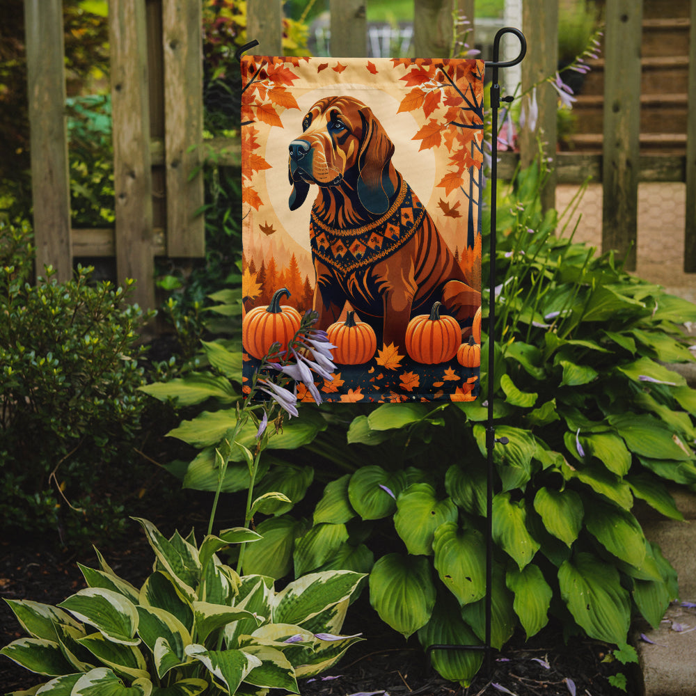 Shown here is the Bloodhound Fall Garden Flag from Caroline's Treasures featuring artwork of a Bloodhound in a Fall design. The detailed illustration and vibrant colors make it a standout accent that celebrates both seasonal style for you home. Embrace the cozy charm of the season with our Falling Autumn Leaves Collection. Featuring rich, leaf-inspired designs that capture the colors and spirit of autumn, this collection brings warm style and seasonal flair to home d�cor and thoughtful fall gifts. Enhance the beauty of your garden, patio, or yard with Caroline's Treasures Decorative Garden Flag, proudly made in the USA. Crafted from two pieces of thick, double-sided polyester fabric, this 2-ply garden flag is designed to withstand various weather conditions, making it water-resistant and weatherproof. Featuring correctly readable words on both sides, this garden flag offers a delightful visual experience from any angle. With its heavier weight, it stands out among other garden flags, ensuring stability and durability even in wind, rain, and snow. Measuring approximately 11 1/4 inches by 15 1/2 inches, this flag allows you to personalize your outdoor decor. It comes with a 1 1/2-inch sleeve sewn in, allowing easy attachment to any standard garden flag stand or garden size porch hanger (sold separately). Make a statement in your outdoor space with Caroline's Treasures Decorative Garden Flag, a vibrant and high-quality flag that adds color and personality to your surroundings. Proudly made in the USA, it's a symbol of quality craftsmanship and attention to detail. Bloodhounds are scent hounds renowned for their exceptional tracking ability and gentle personality. This breed is admired for its determination, loyalty, and calm demeanor. Perfect for: Front porches, gardens, yards, patios, decorating, Dogs-themed homes, or year-round display for Bloodhound enthusiasts Makes a heartfelt gift for: Bloodhound owners, Dogs lovers, gifts, pet parents, friends who adore their Bloodhound, or anyone celebrating Dogs.