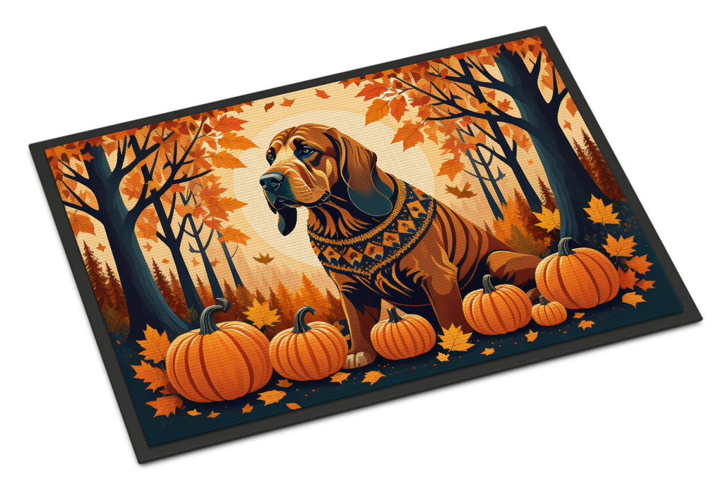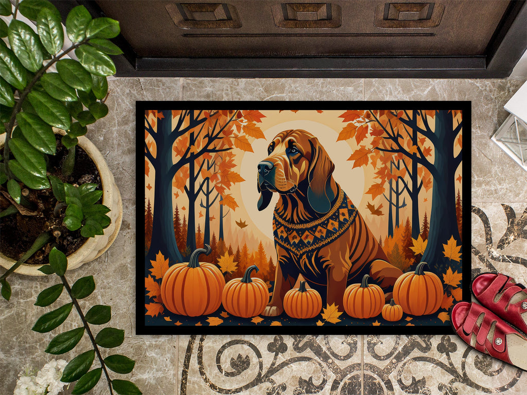 Shown here is the Bloodhound Fall Doormat from Caroline's Treasures featuring artwork of a Bloodhound in a Fall design. The detailed illustration and vibrant colors make it a standout accent that celebrates both seasonal style for you home. Embrace the cozy charm of the season with our Falling Autumn Leaves Collection. Featuring rich, leaf-inspired designs that capture the colors and spirit of autumn, this collection brings warm style and seasonal flair to home d�cor and thoughtful fall gifts. Welcome your guests in style with our Artwork Door Mat, designed to withstand almost any weather condition. This mat, measuring approximately 24 by 36 inches, is held together by durable black binding tape. Its top layer, composed of polyester felt, is dyed with the eye-catching image you see on the mat. A few layers below provide the mat with stability, while its rubber bottom is stamped to help prevent slipping and ensures safety. Our mat works wonderfully as both an indoor or outdoor door mat. For cleaning, simply hose it off with water or use a power washer - no need for any cleaner that produces suds. Avoid scrubbing with a brush, instead, opt for the vacuum on floor setting. Designed manufactured and printed in the USA, this mat is a perfect addition to your porch, outdoor kitchen, entryway, or any indoor space. Its unique design makes it a charming decorative rug that greets your guests and adds a stylish touch to your home decor. Bloodhounds are scent hounds renowned for their exceptional tracking ability and gentle personality. This breed is admired for its determination, loyalty, and calm demeanor. Perfect for: Front doors, entryways, and porches, everyday home d�cor, Dogs-themed homes, or year-round display for Bloodhound lovers. Makes a heartfelt gift for: Bloodhound owners, Dogs lovers, gifts, pet parents, friends who adore their Bloodhound, or anyone celebrating Dogs.