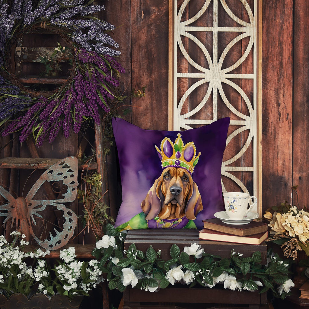 Shown here is the Bloodhound King of Mardi Gras Throw Pillow from Caroline's Treasures featuring artwork of a Bloodhound in a Mardi Gras design. The detailed illustration and vibrant colors make it a standout accent for your home. Bring the vibrant spirit of celebration to your décor with our King of Mardi Gras Collection. Featuring bold, festive designs inspired by Mardi Gras colors and culture, this collection adds playful personality and lively flair to home décor and thoughtful seasonal gifts. Revitalize your outdoor or indoor living space with Caroline's Treasures 18x18 Fabric Decorative Pillow. With a generously sized dimension of approximately 18 inches by 18 inches, this pillow makes a comfortable and aesthetic addition to any seating area. Made from a unique, water-resistant material developed by Caroline's Treasures, the pillow sham is 100% polyester fabric that's durable and ready to weather any condition. Its vibrant, full-color artwork will not fade over time as it is dyed with color-fast dyes. Whether you place it on your patio furniture, porch, veranda, or indoor couch, its soft canvas fabric ensures a cozy experience. The pillow is handcrafted in the United States, featuring a sham created from three pieces of fabric and a polyester insert for enduring shape and overstuffed comfort. Despite being robustly built to endure the outdoors, it is as soft and snug as your favorite indoor cushions. Please note, as all our pillows are handmade, sizes may vary slightly, adding to the charm of this unique decorative item. Bloodhounds are scent hounds renowned for their exceptional tracking ability and gentle personality. This breed is admired for its determination, loyalty, and calm demeanor. Perfect for: Living rooms, bedrooms, couches, and chairs, seasonal or everyday decorating, Dogs-themed homes, or year-round display for Bloodhound fans. Makes a heartfelt gift for: Bloodhound owners, Dogs lovers, Mardi Gras gifts, pet parents, friends who adore their Bloodhound, or anyone celebrating Dogs.