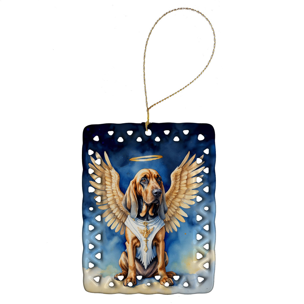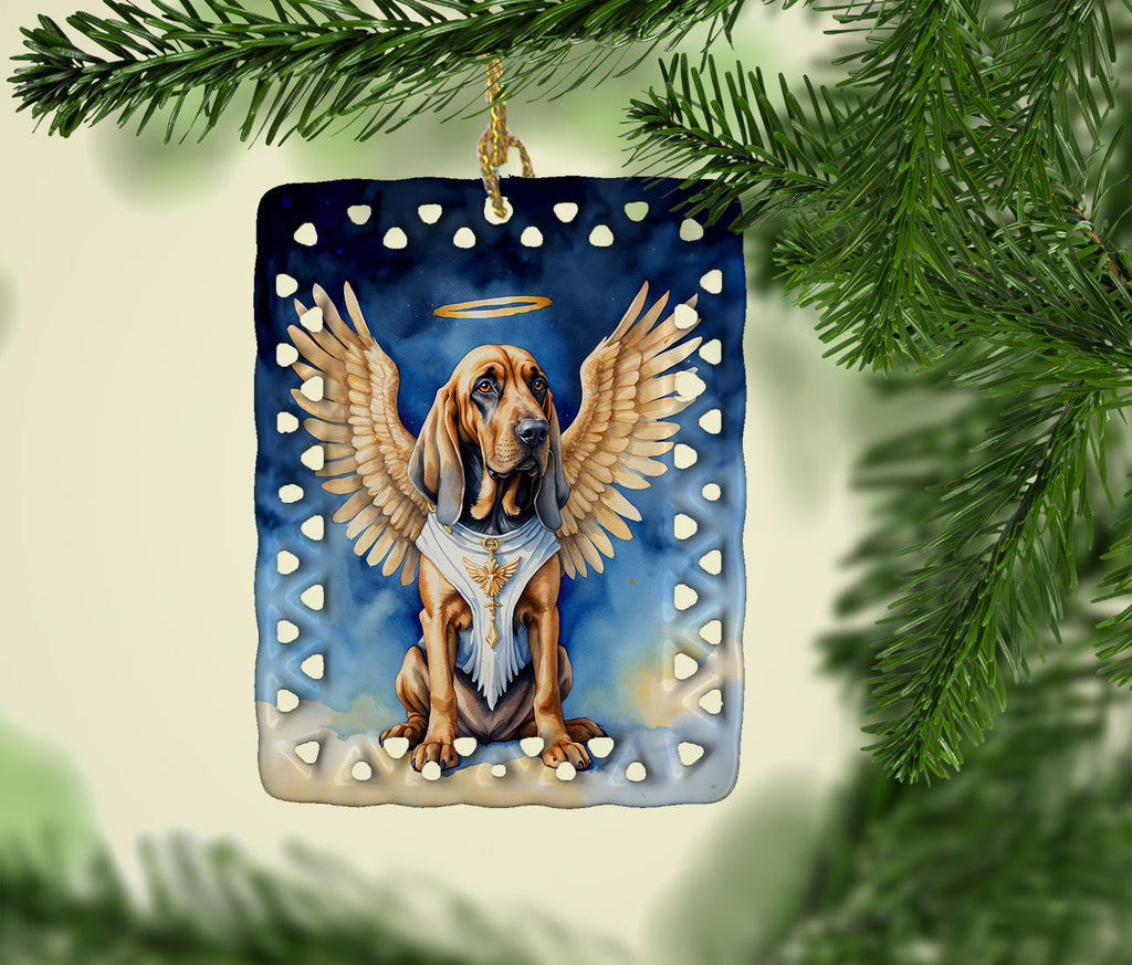 Shown here is the Bloodhound My Angel Porcelain Ornament from Caroline's Treasures featuring artwork of a Bloodhound in a Christmas design. The detailed illustration and vibrant colors make it a standout accent for your home. Honor cherished memories with our My Angel Collection. Featuring heartfelt designs that celebrate love, remembrance, and special bonds, this collection brings comfort and meaningful style to home décor and thoughtful gifts. Add a unique, personal touch to your holiday decor with our Rectangular Lattice Porcelain Ornament. Perfect for creating cherished memories, this high-quality ornament shines under festive lights, reflecting warmth and joy throughout your Christmas tree. Crafted with a glossy finish, it showcases vibrant, full-color artwork contributed by our talented artists, ensuring your tree is adorned with a burst of color and holiday spirit. What sets this Porcelain Ornament apart is its customizable white back. Use a paint pen or permanent marker to write a heartfelt message, commemorate a special year, or mark an unforgettable date, turning this ornament into a keepsake that will be treasured for years to come. For best results, allow any personalization to dry thoroughly before handling. Each ornament comes complete with a delicate gold cord, making it easy to hang and display. Proudly made in the USA, this ornament measures 3.375 x 2.625 inches and is a thoughtful gift for pet sitters, teachers, family members, or anyone who would appreciate a little extra holiday magic. Bring style, charm, and a touch of personal meaning to your Christmas tree with this beautifully designed ornament.. Bloodhounds are scent hounds renowned for their exceptional tracking ability and gentle personality. This breed is admired for its determination, loyalty, and calm demeanor. Perfect for: Christmas trees, wreaths, garlands, and holiday displays, festive seasonal decorating, Dogs-themed holiday homes, or year-after-year use for Bloodhound enthusiasts. Makes a heartfelt gift for: Bloodhound owners, Dogs lovers, Christmas gifts, pet parents, friends who adore their Bloodhound, or anyone celebrating Dogs.