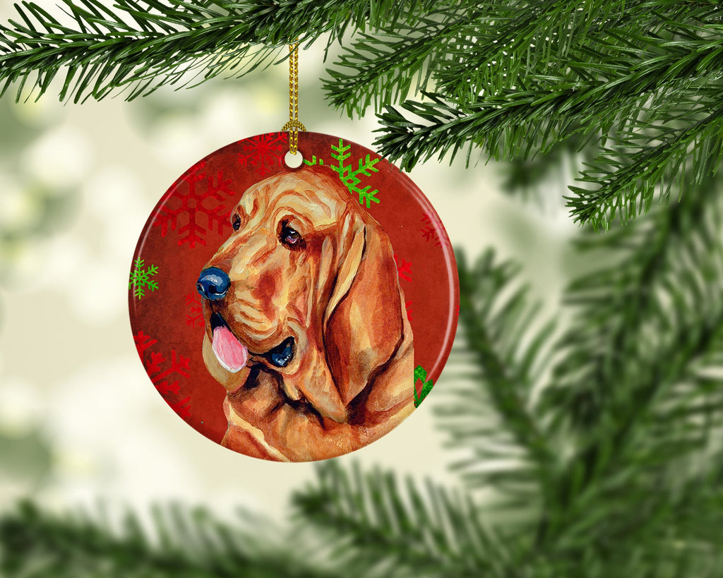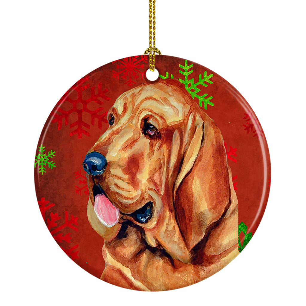 Decorate your space with our Christmas Bloodhound artwork on a Ornament. Add a touch of personalized charm to your Christmas tree this holiday season with our Ceramic Ornament. Measuring 2.8125 inches in diameter, this round porcelain ornament beautifully reflects your festive lights, enhancing your holiday decor. The gloss surface sets off the vibrant, full-color artwork contributed by one of our talented artists, bringing a pop of color and joy to your tree. This Ceramic Ornament doesn't stop at being merely decorative. The white back is designed for personalization. Write a heartfelt message, mark a special year, or inscribe a date with a paint pen or a permanent marker to create a treasured memento. Please ensure you allow any personalization to dry thoroughly before handling to maintain the pristine finish. Included with the ornament is a delicate gold cord for easy hanging. Made in the USA, this Ceramic Ornament makes an exceptional gift for a pet sitter, teacher, family member, or anyone you wish to share a little Christmas magic with. With its blend of style, charm, and personal touch, it's a meaningful addition to any Christmas tree.