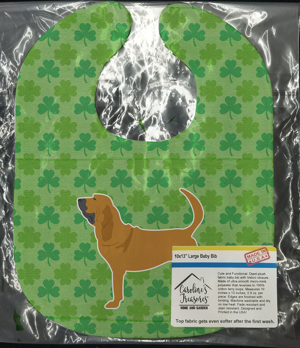 Decorate your space with our St Patrick's Day Bloodhound artwork on a Baby Bib. Cute and Functional. Dyed plush fabric baby bib with Velcro closure. Made of ultra-smooth micro-mink polyester that reverses to 100% cotton terry loops. Measures 10 inches x 13 inches, 0.8 oz. per piece. Edges are finished with binding. Machine washable and dry on low heat. Fade resistant and stain resistant. Top fabric gets even softer after the first wash.