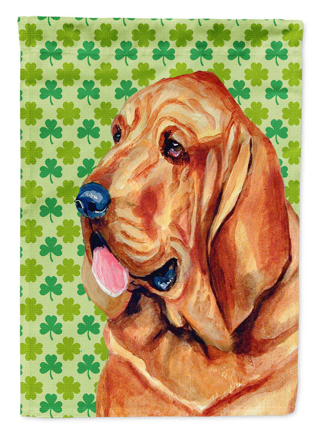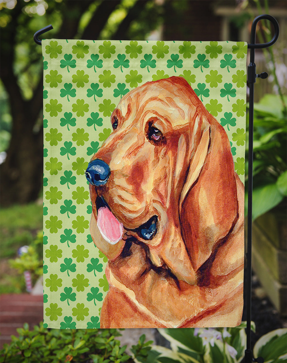 Decorate your space with our St Patrick's Day Bloodhound artwork on a Garden Flag. Enhance the beauty of your garden, patio, or yard with Caroline's Treasures Decorative Garden Flag, proudly made in the USA. Crafted from two pieces of thick, double-sided polyester fabric, this 2-ply garden flag is designed to withstand various weather conditions, making it water-resistant and weatherproof. Featuring correctly readable words on both sides, this garden flag offers a delightful visual experience from any angle. With its heavier weight, it stands out among other garden flags, ensuring stability and durability even in wind, rain, and snow. Measuring approximately 11 1/4 inches by 15 1/2 inches, this flag allows you to personalize your outdoor decor. It comes with a 1 1/2-inch sleeve sewn in, allowing easy attachment to any standard garden flag stand or garden size porch hanger (sold separately). Make a statement in your outdoor space with Caroline's Treasures Decorative Garden Flag, a vibrant and high-quality flag that adds color and personality to your surroundings. Proudly made in the USA, it's a symbol of quality craftsmanship and attention to detail.