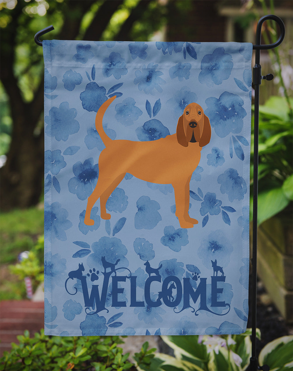 Shown here is the Bloodhound Welcome Garden Flag from Caroline's Treasures featuring artwork of a Bloodhound in a Everyday design. The detailed illustration and vibrant colors make it a standout accent for your home. Enhance the beauty of your garden, patio, or yard with Caroline's Treasures Decorative Garden Flag, proudly made in the USA. Crafted from two pieces of thick, double-sided polyester fabric, this 2-ply garden flag is designed to withstand various weather conditions, making it water-resistant and weatherproof. Featuring correctly readable words on both sides, this garden flag offers a delightful visual experience from any angle. With its heavier weight, it stands out among other garden flags, ensuring stability and durability even in wind, rain, and snow. Measuring approximately 11 1/4 inches by 15 1/2 inches, this flag allows you to personalize your outdoor decor. It comes with a 1 1/2-inch sleeve sewn in, allowing easy attachment to any standard garden flag stand or garden size porch hanger (sold separately). Make a statement in your outdoor space with Caroline's Treasures Decorative Garden Flag, a vibrant and high-quality flag that adds color and personality to your surroundings. Proudly made in the USA, it's a symbol of quality craftsmanship and attention to detail. Bloodhounds are scent hounds renowned for their exceptional tracking ability and gentle personality. This breed is admired for its determination, loyalty, and calm demeanor. Perfect for: Front porches, gardens, yards, patios, Everyday decorating, Dogs-themed homes, or year-round display for Bloodhound enthusiasts Makes a heartfelt gift for: Bloodhound owners, Dogs lovers, Everyday gifts, pet parents, friends who adore their Bloodhound, or anyone celebrating Dogs.
