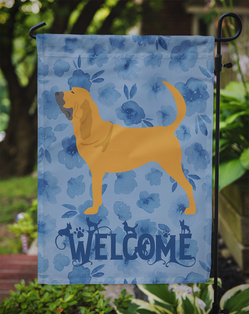 Shown here is the Bloodhound Welcome Garden Flag from Caroline's Treasures featuring artwork of a Bloodhound in a Everyday design. The detailed illustration and vibrant colors make it a standout accent for your home. Enhance the beauty of your garden, patio, or yard with Caroline's Treasures Decorative Garden Flag, proudly made in the USA. Crafted from two pieces of thick, double-sided polyester fabric, this 2-ply garden flag is designed to withstand various weather conditions, making it water-resistant and weatherproof. Featuring correctly readable words on both sides, this garden flag offers a delightful visual experience from any angle. With its heavier weight, it stands out among other garden flags, ensuring stability and durability even in wind, rain, and snow. Measuring approximately 11 1/4 inches by 15 1/2 inches, this flag allows you to personalize your outdoor decor. It comes with a 1 1/2-inch sleeve sewn in, allowing easy attachment to any standard garden flag stand or garden size porch hanger (sold separately). Make a statement in your outdoor space with Caroline's Treasures Decorative Garden Flag, a vibrant and high-quality flag that adds color and personality to your surroundings. Proudly made in the USA, it's a symbol of quality craftsmanship and attention to detail. Bloodhounds are scent hounds renowned for their exceptional tracking ability and gentle personality. This breed is admired for its determination, loyalty, and calm demeanor. Perfect for: Front porches, gardens, yards, patios, Everyday decorating, Dogs-themed homes, or year-round display for Bloodhound enthusiasts Makes a heartfelt gift for: Bloodhound owners, Dogs lovers, Everyday gifts, pet parents, friends who adore their Bloodhound, or anyone celebrating Dogs.