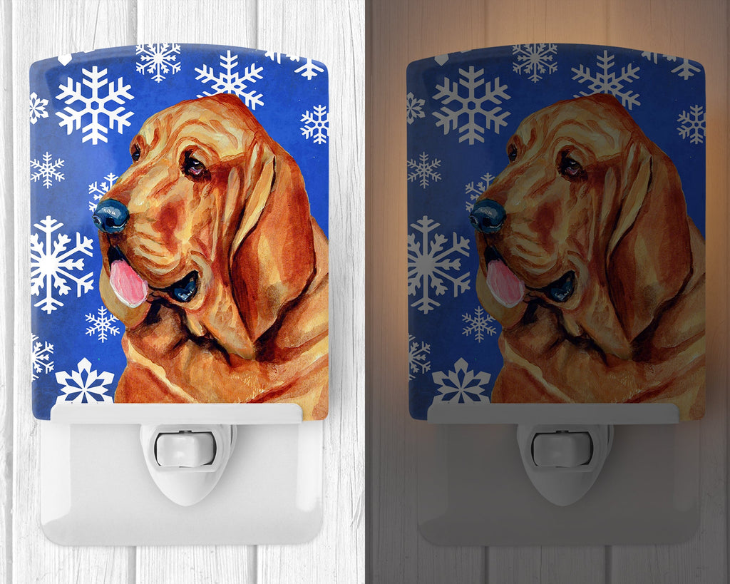 Decorate your space with our Christmas Bloodhound artwork on a Night Light. Bring a bit of Winter into your home with a Winter Night Light. Introduce a splash of artistic flair and subtle illumination to your space with the Decorative Ceramic Night Light from Caroline's Treasures. Perfect for any room, this night light seamlessly blends functionality with an aesthetic appeal, offering a stylish solution to brighten up dark corners of your home or office. Boasting a six-inch high by four-inch wide ceramic tile at the front, it showcases vivid, full-color artwork from distinguished artists, transforming a simple utility into a vibrant art piece. The artwork is securely encased in a robust metal holder, ensuring durability and longevity. Two screws are provided to firmly affix the tile into the holder. The holder extends three inches deep, housing an included bulb that emits a soft, welcoming glow. This product meets all safety standards, as evidenced by its UL approval. Proudly made in the United States from imported components, this Decorative Ceramic Night Light is not just a functional device; it's a statement piece that enhances the ambiance of your surroundings.
