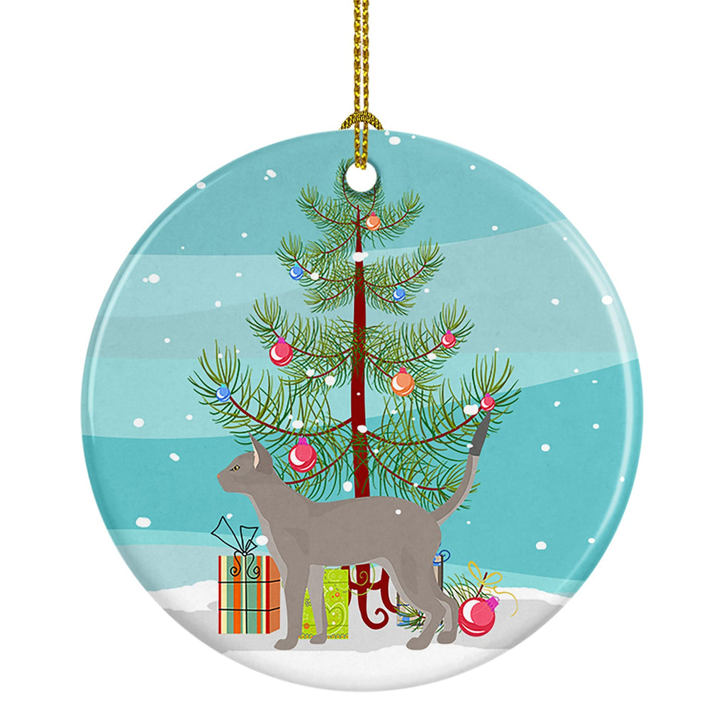 Shown here is the Blue Abyssinian Cat Christmas Ceramic Ornament from Caroline's Treasures featuring artwork of a Abyssinian in a Christmas design. The detailed illustration and vibrant colors make it a standout accent for your home. Add a touch of personalized charm to your Christmas tree this holiday season with our Ceramic Ornament. Measuring 2.8125 inches in diameter, this round porcelain ornament beautifully reflects your festive lights, enhancing your holiday decor. The gloss surface sets off the vibrant, full-color artwork contributed by one of our talented artists, bringing a pop of color and joy to your tree. This Ceramic Ornament doesn't stop at being merely decorative. The white back is designed for personalization. Write a heartfelt message, mark a special year, or inscribe a date with a paint pen or a permanent marker to create a treasured memento. Please ensure you allow any personalization to dry thoroughly before handling to maintain the pristine finish. Included with the ornament is a delicate gold cord for easy hanging. Made in the USA, this Ceramic Ornament makes an exceptional gift for a pet sitter, teacher, family member, or anyone you wish to share a little Christmas magic with. With its blend of style, charm, and personal touch, it's a meaningful addition to any Christmas tree. Abyssinians are sleek, athletic cats known for their ticked coats and alert expressions. Their curious nature and elegant appearance make them a favorite among active households. Perfect for: Christmas trees, wreaths, garlands, and holiday displays, festive seasonal decorating, Cats-themed holiday homes, or year-after-year use for Abyssinian enthusiasts. Makes a heartfelt gift for: Abyssinian owners, Cats lovers, Christmas gifts, pet parents, friends who adore their Abyssinian, or anyone celebrating Cats.