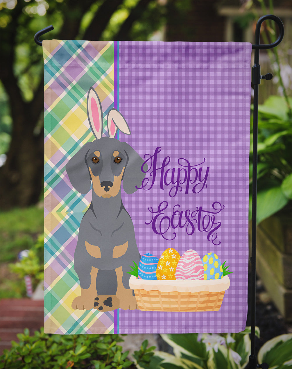 Shown here is the Blue and Tan Dachshund Easter Garden Flag from Caroline's Treasures featuring artwork of a Dachshund in a Easter design. The detailed illustration and vibrant colors make it a standout accent for your home. Enhance the beauty of your garden, patio, or yard with Caroline's Treasures Decorative Garden Flag, proudly made in the USA. Crafted from two pieces of thick, double-sided polyester fabric, this 2-ply garden flag is designed to withstand various weather conditions, making it water-resistant and weatherproof. Featuring correctly readable words on both sides, this garden flag offers a delightful visual experience from any angle. With its heavier weight, it stands out among other garden flags, ensuring stability and durability even in wind, rain, and snow. Measuring approximately 11 1/4 inches by 15 1/2 inches, this flag allows you to personalize your outdoor decor. It comes with a 1 1/2-inch sleeve sewn in, allowing easy attachment to any standard garden flag stand or garden size porch hanger (sold separately). Make a statement in your outdoor space with Caroline's Treasures Decorative Garden Flag, a vibrant and high-quality flag that adds color and personality to your surroundings. Proudly made in the USA, it's a symbol of quality craftsmanship and attention to detail. Dachshunds are bold hounds known for their long bodies and confident personality. Often called wiener dogs, this breed is loved for its loyalty, courage, and playful spirit. Perfect for: Front porches, gardens, yards, patios, Easter decorating, Dogs-themed homes, or year-round display for Dachshund enthusiasts Makes a heartfelt gift for: Dachshund owners, Dogs lovers, Easter gifts, pet parents, friends who adore their Dachshund, or anyone celebrating Dogs.