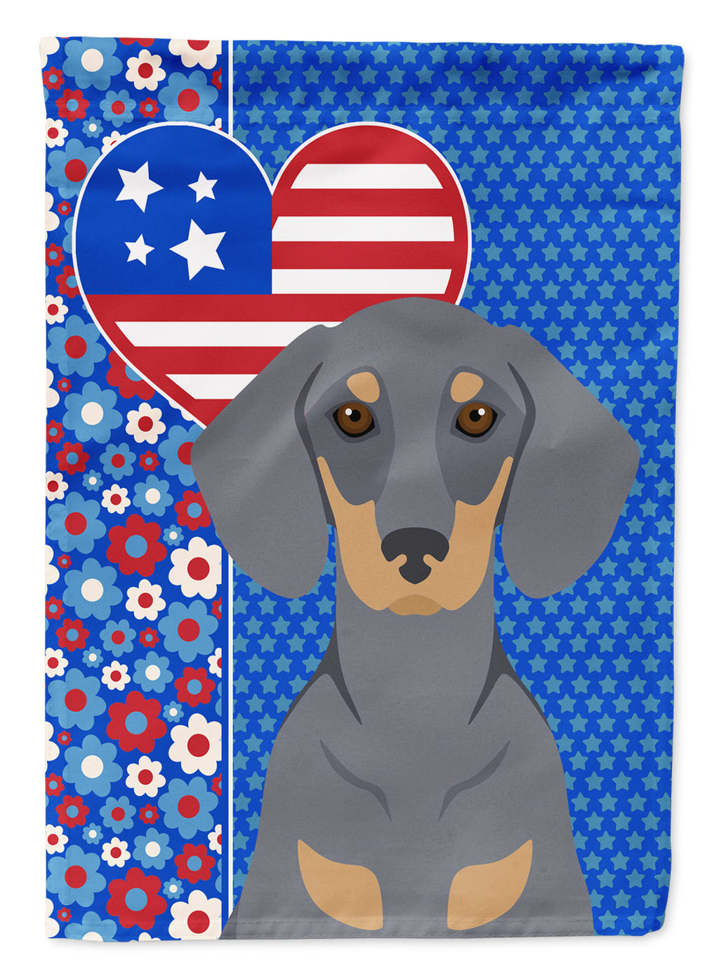 Shown here is the Blue and Tan Dachshund USA American Garden Flag from Caroline's Treasures featuring artwork of a Dachshund in a 4th of July design. The detailed illustration and vibrant colors make it a standout accent that celebrates both seasonal style for your homet. Celebrate love for country and home with our USA Love America Collection. Featuring patriotic designs inspired by red, white, and blue traditions, this collection brings heartfelt American spirit and timeless style to home d�cor and meaningful gifts. Enhance the beauty of your garden, patio, or yard with Caroline's Treasures Decorative Garden Flag, proudly made in the USA. Crafted from two pieces of thick, double-sided polyester fabric, this 2-ply garden flag is designed to withstand various weather conditions, making it water-resistant and weatherproof. Featuring correctly readable words on both sides, this garden flag offers a delightful visual experience from any angle. With its heavier weight, it stands out among other garden flags, ensuring stability and durability even in wind, rain, and snow. Measuring approximately 11 1/4 inches by 15 1/2 inches, this flag allows you to personalize your outdoor decor. It comes with a 1 1/2-inch sleeve sewn in, allowing easy attachment to any standard garden flag stand or garden size porch hanger (sold separately). Make a statement in your outdoor space with Caroline's Treasures Decorative Garden Flag, a vibrant and high-quality flag that adds color and personality to your surroundings. Proudly made in the USA, it's a symbol of quality craftsmanship and attention to detail. Dachshunds are bold hounds known for their long bodies and confident personality. Often called wiener dogs, this breed is loved for its loyalty, courage, and playful spirit. Perfect for: Front porches, gardens, yards, patios, 4th of July decorating, Dogs-themed homes, or year-round display for Dachshund enthusiasts Makes a heartfelt gift for: Dachshund owners, Dogs lovers, 4th of July gifts, pet parents, friends who adore their Dachshund, or anyone celebrating Dogs.