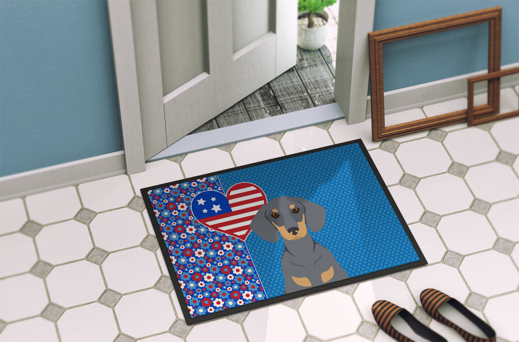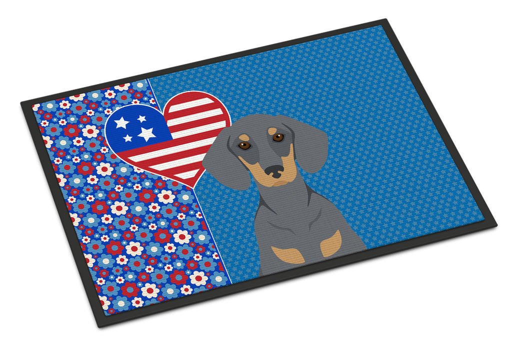 Shown here is the Blue and Tan Dachshund USA American Doormat from Caroline's Treasures featuring artwork of a Dachshund in a 4th of July design. The detailed illustration and vibrant colors make it a standout accent that celebrates both seasonal style for your homet. Celebrate love for country and home with our USA Love America Collection. Featuring patriotic designs inspired by red, white, and blue traditions, this collection brings heartfelt American spirit and timeless style to home d�cor and meaningful gifts. Welcome your guests in style with our Artwork Door Mat, designed to withstand almost any weather condition. This mat, measuring approximately 24 by 36 inches, is held together by durable black binding tape. Its top layer, composed of polyester felt, is dyed with the eye-catching image you see on the mat. A few layers below provide the mat with stability, while its rubber bottom is stamped to help prevent slipping and ensures safety. Our mat works wonderfully as both an indoor or outdoor door mat. For cleaning, simply hose it off with water or use a power washer - no need for any cleaner that produces suds. Avoid scrubbing with a brush, instead, opt for the vacuum on floor setting. Designed manufactured and printed in the USA, this mat is a perfect addition to your porch, outdoor kitchen, entryway, or any indoor space. Its unique design makes it a charming decorative rug that greets your guests and adds a stylish touch to your home decor. Dachshunds are bold hounds known for their long bodies and confident personality. Often called wiener dogs, this breed is loved for its loyalty, courage, and playful spirit. Perfect for: Front doors, entryways, and porches, everyday home d�cor, Dogs-themed homes, or year-round display for Dachshund lovers. Makes a heartfelt gift for: Dachshund owners, Dogs lovers, 4th of July gifts, pet parents, friends who adore their Dachshund, or anyone celebrating Dogs.