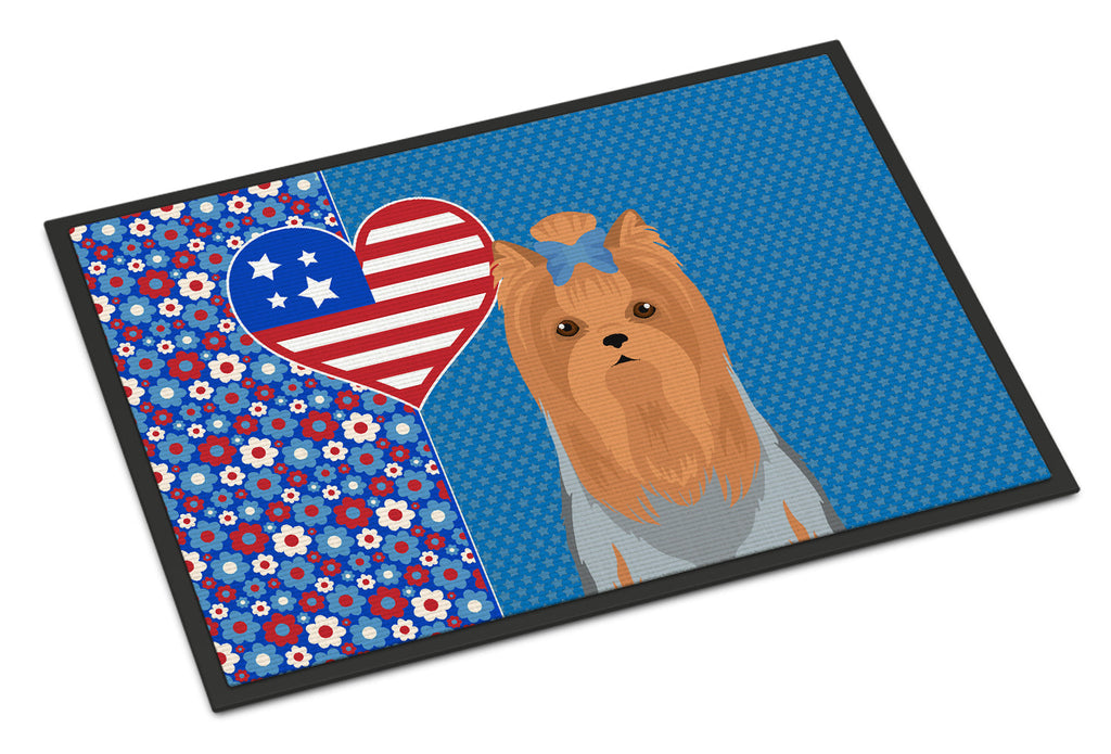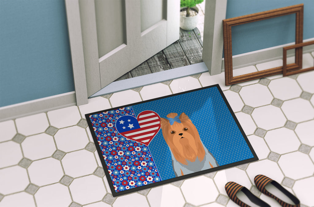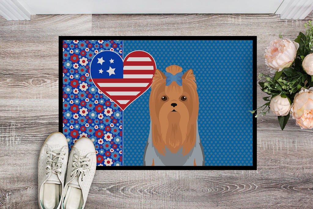 Shown here is the Blue and Tan Full Coat Yorkshire Terrier USA American Doormat from Caroline's Treasures featuring artwork of a Yorkshire Terrier in a 4th of July design. The detailed illustration and vibrant colors make it a standout accent that celebrates both seasonal style for your homet. Celebrate love for country and home with our USA Love America Collection. Featuring patriotic designs inspired by red, white, and blue traditions, this collection brings heartfelt American spirit and timeless style to home d�cor and meaningful gifts. Welcome your guests in style with our Artwork Door Mat, designed to withstand almost any weather condition. This mat, measuring approximately 24 by 36 inches, is held together by durable black binding tape. Its top layer, composed of polyester felt, is dyed with the eye-catching image you see on the mat. A few layers below provide the mat with stability, while its rubber bottom is stamped to help prevent slipping and ensures safety. Our mat works wonderfully as both an indoor or outdoor door mat. For cleaning, simply hose it off with water or use a power washer - no need for any cleaner that produces suds. Avoid scrubbing with a brush, instead, opt for the vacuum on floor setting. Designed manufactured and printed in the USA, this mat is a perfect addition to your porch, outdoor kitchen, entryway, or any indoor space. Its unique design makes it a charming decorative rug that greets your guests and adds a stylish touch to your home decor. Yorkshire Terriers, often called Yorkies, are small companion dogs known for their confident personality and silky coats. This breed is cherished for its loyalty, intelligence, and spirited nature. Perfect for: Front doors, entryways, and porches, everyday home d�cor, Dogs-themed homes, or year-round display for Yorkshire Terrier lovers. Makes a heartfelt gift for: Yorkshire Terrier owners, Dogs lovers, 4th of July gifts, pet parents, friends who adore their Yorkshire Terrier, or anyone celebrating Dogs.