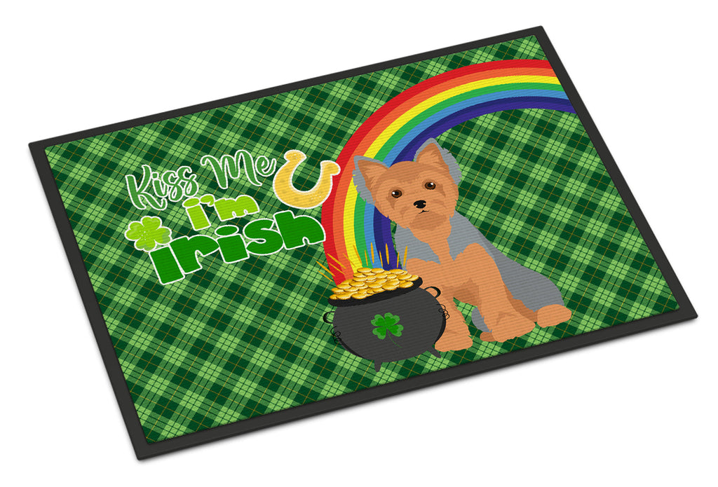Shown here is the Blue and Tan Puppy Cut Yorkshire Terrier St. Patrick's Day Doormat from Caroline's Treasures featuring artwork of a Yorkshire Terrier in a St Patrick's Day design. The detailed illustration and vibrant colors make it a standout accent for your home. Welcome your guests in style with our Artwork Door Mat, designed to withstand almost any weather condition. This mat, measuring approximately 24 by 36 inches, is held together by durable black binding tape. Its top layer, composed of polyester felt, is dyed with the eye-catching image you see on the mat. A few layers below provide the mat with stability, while its rubber bottom is stamped to help prevent slipping and ensures safety. Our mat works wonderfully as both an indoor or outdoor door mat. For cleaning, simply hose it off with water or use a power washer - no need for any cleaner that produces suds. Avoid scrubbing with a brush, instead, opt for the vacuum on floor setting. Designed manufactured and printed in the USA, this mat is a perfect addition to your porch, outdoor kitchen, entryway, or any indoor space. Its unique design makes it a charming decorative rug that greets your guests and adds a stylish touch to your home decor. Yorkshire Terriers, often called Yorkies, are small companion dogs known for their confident personality and silky coats. This breed is cherished for its loyalty, intelligence, and spirited nature. Perfect for: Front doors, entryways, and porches, everyday home d�cor, Dogs-themed homes, or year-round display for Yorkshire Terrier lovers. Makes a heartfelt gift for: Yorkshire Terrier owners, Dogs lovers, St Patrick's Day gifts, pet parents, friends who adore their Yorkshire Terrier, or anyone celebrating Dogs.