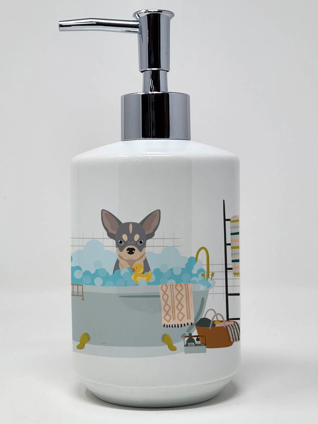 Shown here is the Blue and White Chihuahua Ceramic Soap Dispenser from Caroline's Treasures featuring artwork of a Chihuahua in a Everyday design. The detailed illustration and vibrant colors make it a standout accent for your home. Revitalize your kitchen or bathroom decor with the Decorative Ceramic Soap Dispenser from Caroline's Treasures. This refillable dispenser marries practicality and style, serving as a vibrant art piece in addition to its primary function. The dispenser's exterior boasts colorful artwork from one of Caroline's Treasures' artists, wrapping around the dispenser to add a touch of personality and color to your space. Measuring approximately 7 1/4 inches high and about 3 1/2 inches in diameter, it is the perfect size for any countertop. The dispenser features a sturdy pump nozzle, which screws easily into the top of the ceramic dispenser. With a simple press, you can conveniently dispense your preferred liquid soap, lotion, aromatherapy essential oil blend, shampoo, body wash, or even massage oils. The Decorative Ceramic Soap Dispenser is more than a functional item - it's a statement piece that adds a unique touch to your bathroom or kitchen decor, transforming everyday rituals into an artful experience. Chihuahuas are small companion dogs known for their bold personality and strong attachment to their owners. Despite their size, this breed is admired for its confidence, loyalty, and alert nature. Makes a heartfelt gift for: Chihuahua owners, Dogs lovers, Everyday gifts, pet parents, friends who adore their Chihuahua, or anyone celebrating Dogs.