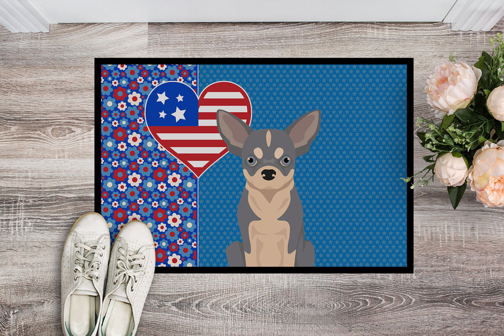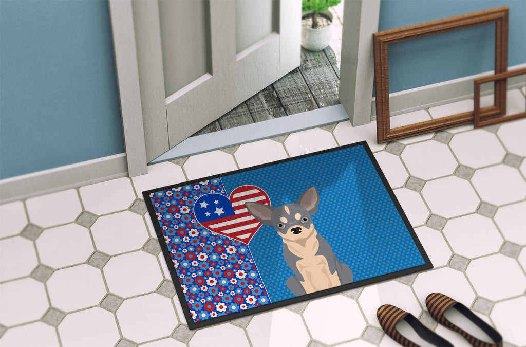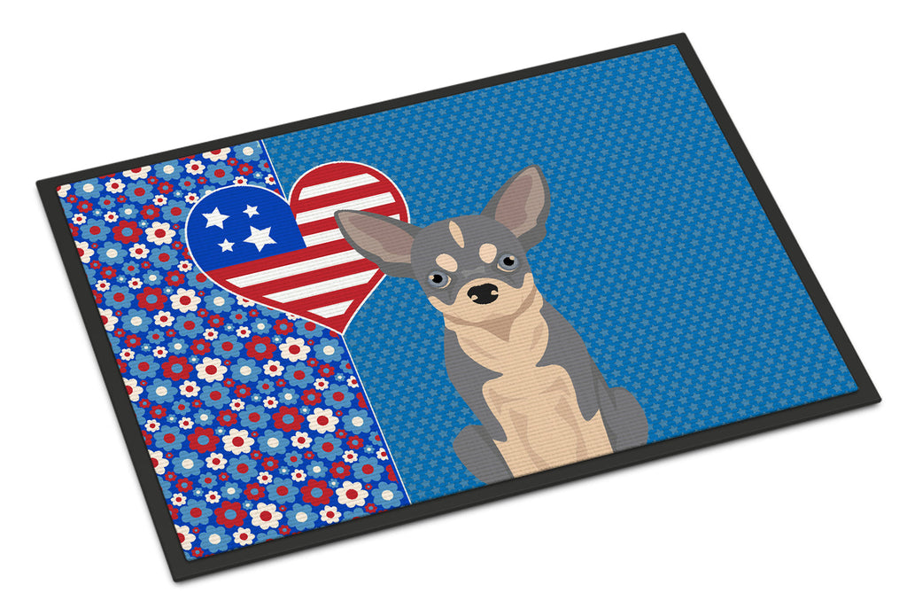 Shown here is the Blue and White Chihuahua USA American Doormat from Caroline's Treasures featuring artwork of a Chihuahua in a 4th of July design. The detailed illustration and vibrant colors make it a standout accent that celebrates both seasonal style for your homet. Celebrate love for country and home with our USA Love America Collection. Featuring patriotic designs inspired by red, white, and blue traditions, this collection brings heartfelt American spirit and timeless style to home d�cor and meaningful gifts. Welcome your guests in style with our Artwork Door Mat, designed to withstand almost any weather condition. This mat, measuring approximately 24 by 36 inches, is held together by durable black binding tape. Its top layer, composed of polyester felt, is dyed with the eye-catching image you see on the mat. A few layers below provide the mat with stability, while its rubber bottom is stamped to help prevent slipping and ensures safety. Our mat works wonderfully as both an indoor or outdoor door mat. For cleaning, simply hose it off with water or use a power washer - no need for any cleaner that produces suds. Avoid scrubbing with a brush, instead, opt for the vacuum on floor setting. Designed manufactured and printed in the USA, this mat is a perfect addition to your porch, outdoor kitchen, entryway, or any indoor space. Its unique design makes it a charming decorative rug that greets your guests and adds a stylish touch to your home decor. Chihuahuas are small companion dogs known for their bold personality and strong attachment to their owners. Despite their size, this breed is admired for its confidence, loyalty, and alert nature. Perfect for: Front doors, entryways, and porches, everyday home d�cor, Dogs-themed homes, or year-round display for Chihuahua lovers. Makes a heartfelt gift for: Chihuahua owners, Dogs lovers, 4th of July gifts, pet parents, friends who adore their Chihuahua, or anyone celebrating Dogs.