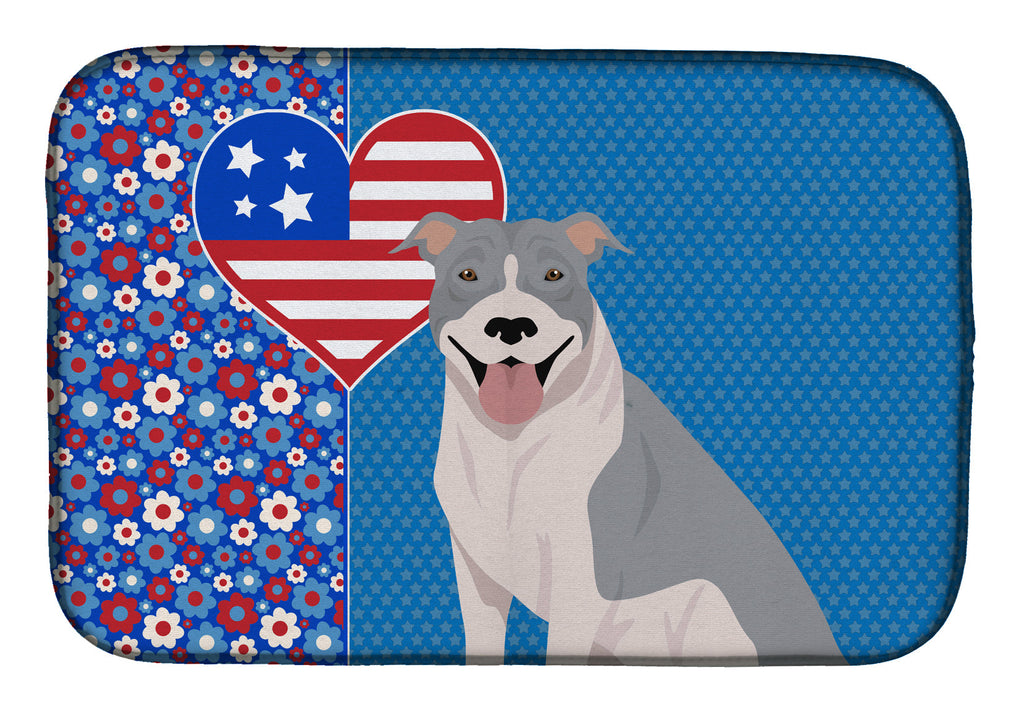 Shown here is the Blue and White Pit Bull Terrier USA American Dish Drying Mat from Caroline's Treasures featuring artwork of a Pit Bull Terrier in a 4th of July design. The detailed illustration and vibrant colors make it a standout accent that celebrates both seasonal style for your homet. Celebrate love for country and home with our USA Love America Collection. Featuring patriotic designs inspired by red, white, and blue traditions, this collection brings heartfelt American spirit and timeless style to home d�cor and meaningful gifts. Say goodbye to messy countertops and soggy dish towels with our innovative dish drying mat. Our high-quality dish drying pad is designed to keep your countertops dry while offering a stylish and efficient solution. Whether you're air drying dishes, glasses, stemware, silverware, pots, pans, bottles, or even fruits and vegetables, our dish mat is the perfect choice. The 14 inches x 22 inches size fits most counters and dish drying racks, and the non-slip design ensures stability. Made with water-absorbent polyester and a polyurethane foam insert, our dish drying mat is not only functional but also durable. It's machine washable and printed in the USA for long-lasting use. The beautiful artwork adds flair to your kitchen decor, making it a perfect housewarming gift or present for any occasion. Upgrade your kitchen experience with our absorbent and versatile dish drying mat. Pit Bull Terriers are muscular dogs with confident posture. Their appearance reflects strength and loyalty. Perfect for: Kitchen counters and sinks, everyday dish drying and countertop protection, Dogs-themed homes, or year-round use for Pit Bull Terrier lovers. Makes a heartfelt gift for: Pit Bull Terrier owners, Dogs lovers, 4th of July gifts, pet parents, friends who adore their Pit Bull Terrier, or anyone celebrating Dogs.