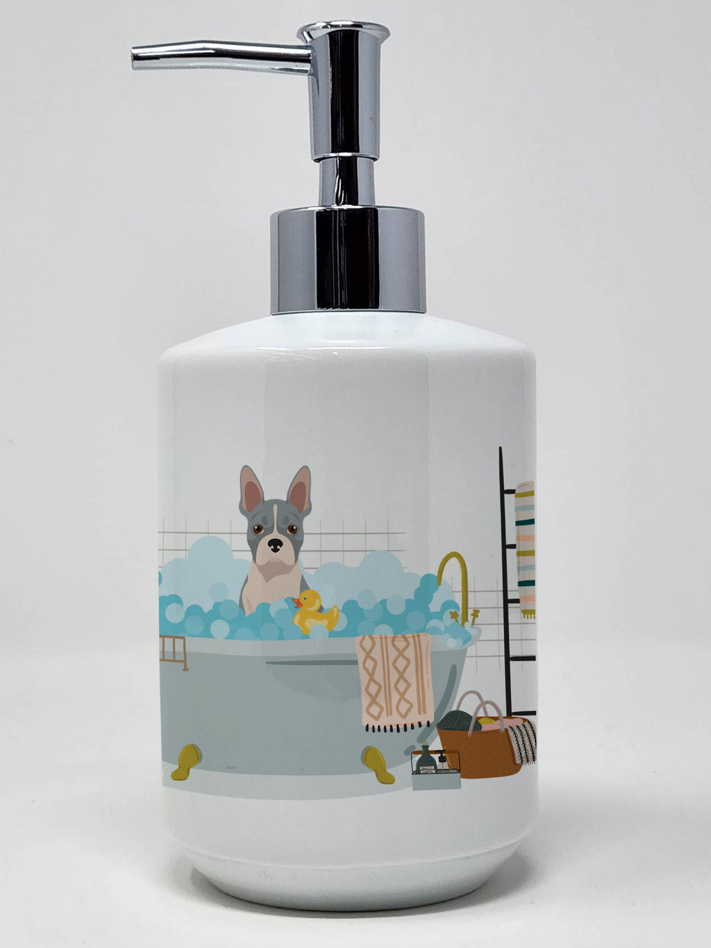 Shown here is the Blue Boston Terrier Ceramic Soap Dispenser from Caroline's Treasures featuring artwork of a Boston Terrier in a Everyday design. The detailed illustration and vibrant colors make it a standout accent for your home. Revitalize your kitchen or bathroom decor with the Decorative Ceramic Soap Dispenser from Caroline's Treasures. This refillable dispenser marries practicality and style, serving as a vibrant art piece in addition to its primary function. The dispenser's exterior boasts colorful artwork from one of Caroline's Treasures' artists, wrapping around the dispenser to add a touch of personality and color to your space. Measuring approximately 7 1/4 inches high and about 3 1/2 inches in diameter, it is the perfect size for any countertop. The dispenser features a sturdy pump nozzle, which screws easily into the top of the ceramic dispenser. With a simple press, you can conveniently dispense your preferred liquid soap, lotion, aromatherapy essential oil blend, shampoo, body wash, or even massage oils. The Decorative Ceramic Soap Dispenser is more than a functional item - it's a statement piece that adds a unique touch to your bathroom or kitchen decor, transforming everyday rituals into an artful experience. Boston Terriers are friendly companion dogs known for their tuxedo-like markings and cheerful personality. Often called the American Gentleman, this breed is loved for its affectionate and lively nature. Makes a heartfelt gift for: Boston Terrier owners, Dogs lovers, Everyday gifts, pet parents, friends who adore their Boston Terrier, or anyone celebrating Dogs.