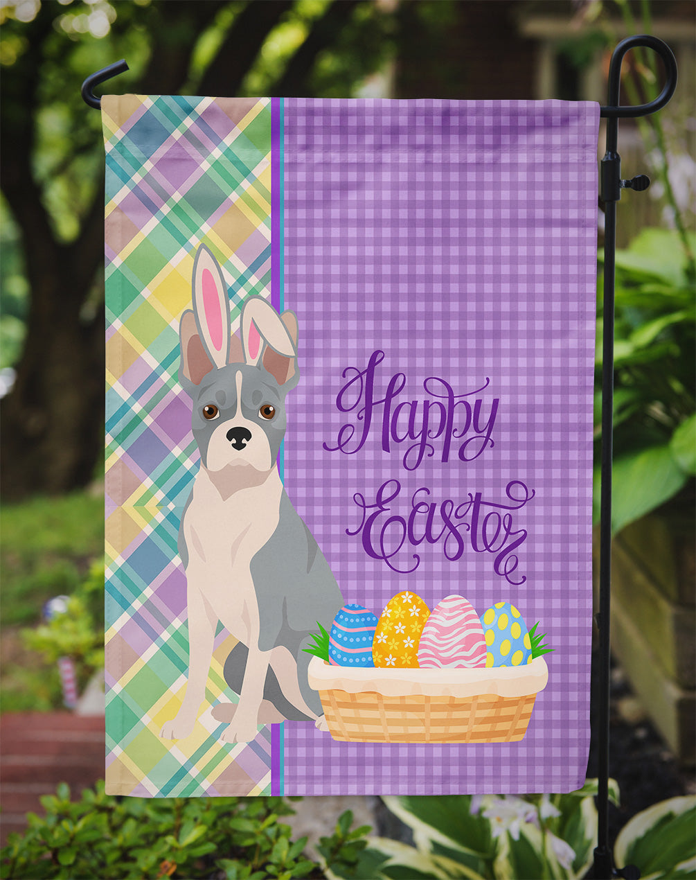 Shown here is the Blue Boston Terrier Easter Garden Flag from Caroline's Treasures featuring artwork of a Boston Terrier in a Easter design. The detailed illustration and vibrant colors make it a standout accent for your home. Enhance the beauty of your garden, patio, or yard with Caroline's Treasures Decorative Garden Flag, proudly made in the USA. Crafted from two pieces of thick, double-sided polyester fabric, this 2-ply garden flag is designed to withstand various weather conditions, making it water-resistant and weatherproof. Featuring correctly readable words on both sides, this garden flag offers a delightful visual experience from any angle. With its heavier weight, it stands out among other garden flags, ensuring stability and durability even in wind, rain, and snow. Measuring approximately 11 1/4 inches by 15 1/2 inches, this flag allows you to personalize your outdoor decor. It comes with a 1 1/2-inch sleeve sewn in, allowing easy attachment to any standard garden flag stand or garden size porch hanger (sold separately). Make a statement in your outdoor space with Caroline's Treasures Decorative Garden Flag, a vibrant and high-quality flag that adds color and personality to your surroundings. Proudly made in the USA, it's a symbol of quality craftsmanship and attention to detail. Boston Terriers are friendly companion dogs known for their tuxedo-like markings and cheerful personality. Often called the American Gentleman, this breed is loved for its affectionate and lively nature. Perfect for: Front porches, gardens, yards, patios, Easter decorating, Dogs-themed homes, or year-round display for Boston Terrier enthusiasts Makes a heartfelt gift for: Boston Terrier owners, Dogs lovers, Easter gifts, pet parents, friends who adore their Boston Terrier, or anyone celebrating Dogs.