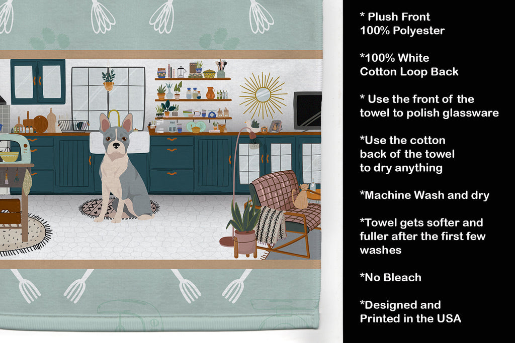 Shown here is the Blue Boston Terrier in the Kitchen Kitchen Towel from Caroline's Treasures featuring artwork of a Boston Terrier in a Everyday design. The detailed illustration and vibrant colors make it a standout accent for your home. Bring cozy everyday charm to your sink or powder room with a plush velour towel featuring original watercolor artwork. The front is a soft, color-rich minky polyester that polishes glassware to a brilliant shine; the back is 100% white cotton terry loop for quick absorbency on hands, dishes, and counters. Artwork is dyed into the fibers for lasting color that won�t crack or peel. Finished edges keep the shape wash after wash. Size: 15" x 25". Machine wash; tumble dry low. Designed and printed in the USA. Boston Terriers are friendly companion dogs known for their tuxedo-like markings and cheerful personality. Often called the American Gentleman, this breed is loved for its affectionate and lively nature. Perfect for: Kitchen counters, ovens, and towel bars, everyday drying and cleanup, Dogs-themed kitchens, or year-round use for Boston Terrier lovers. Makes a heartfelt gift for: Boston Terrier owners, Dogs lovers, Everyday gifts, pet parents, friends who adore their Boston Terrier, or anyone celebrating Dogs.