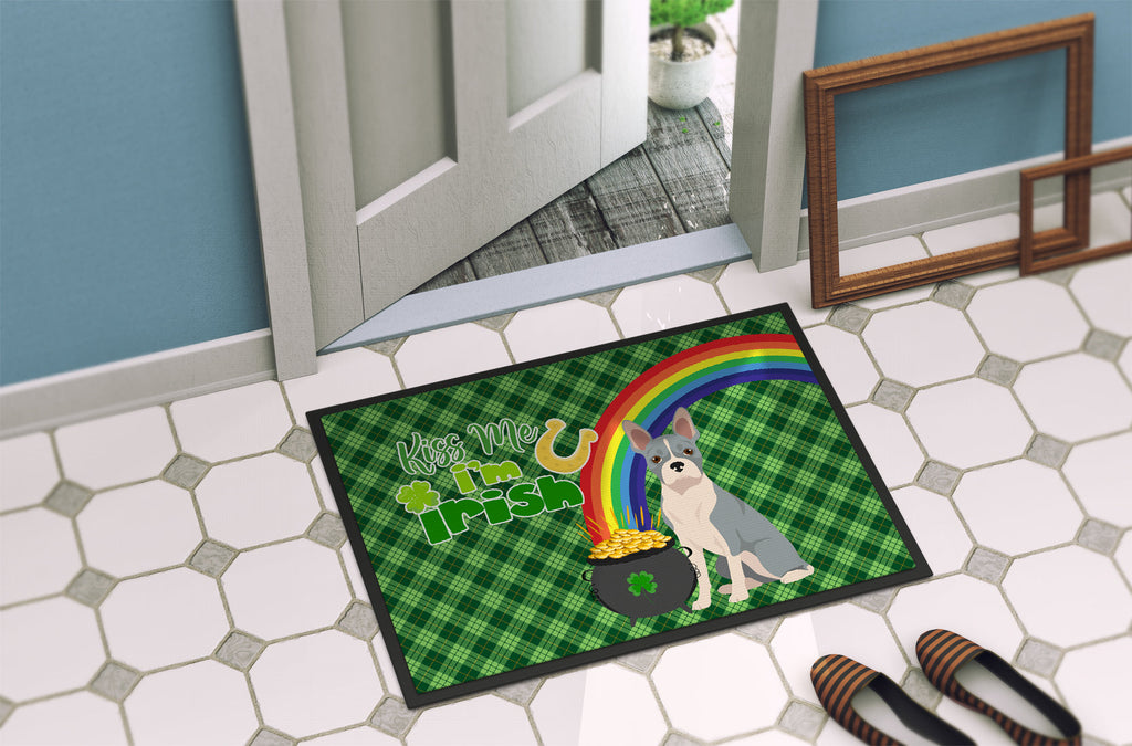 Shown here is the Blue Boston Terrier St. Patrick's Day Doormat from Caroline's Treasures featuring artwork of a Boston Terrier in a St Patrick's Day design. The detailed illustration and vibrant colors make it a standout accent for your home. Welcome your guests in style with our Artwork Door Mat, designed to withstand almost any weather condition. This mat, measuring approximately 24 by 36 inches, is held together by durable black binding tape. Its top layer, composed of polyester felt, is dyed with the eye-catching image you see on the mat. A few layers below provide the mat with stability, while its rubber bottom is stamped to help prevent slipping and ensures safety. Our mat works wonderfully as both an indoor or outdoor door mat. For cleaning, simply hose it off with water or use a power washer - no need for any cleaner that produces suds. Avoid scrubbing with a brush, instead, opt for the vacuum on floor setting. Designed manufactured and printed in the USA, this mat is a perfect addition to your porch, outdoor kitchen, entryway, or any indoor space. Its unique design makes it a charming decorative rug that greets your guests and adds a stylish touch to your home decor. Boston Terriers are friendly companion dogs known for their tuxedo-like markings and cheerful personality. Often called the American Gentleman, this breed is loved for its affectionate and lively nature. Perfect for: Front doors, entryways, and porches, everyday home d�cor, Dogs-themed homes, or year-round display for Boston Terrier lovers. Makes a heartfelt gift for: Boston Terrier owners, Dogs lovers, St Patrick's Day gifts, pet parents, friends who adore their Boston Terrier, or anyone celebrating Dogs.