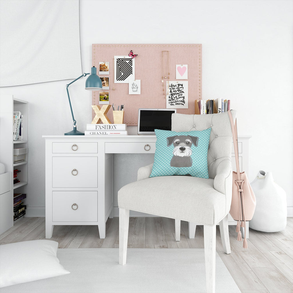 Decorate your space with our Schnauzer artwork on a Pillow. Add a touch of vibrancy and comfort to your outdoor seating with Caroline's Treasures Fabric Decorative Pillow. Measuring approximately 14 inches by 14 inches, this outdoor pillow is crafted to elevate the appeal of your patio furniture, infusing it with vivid color and artistic flair. The pillow includes a 100% Polyester Fabric sham filled with a quality pillow form to provide superior comfort. Innovatively made from our brand new material, specifically woven for its water resistance, this pillow is designed for durability. The soft canvas fabric offers versatility in use, fit for your indoor couch or your outdoor patio, porch, or veranda. The fabric is dyed with colorfast dyes built for resilience against weather conditions, ensuring the pillow retains its beauty over time. Constructed by sewing three fabric pieces to create a sham, the polyester insert is then nestled inside to form the pillow, resulting in an overstuffed pillow that maintains its shape. Both the sham and the pillow insert are proudly made in the United States. As the pillows are handcrafted, there may be minor variations in size, further enhancing their unique charm. Experience comfort in style with Caroline's Treasures Fabric Decorative Pillow.