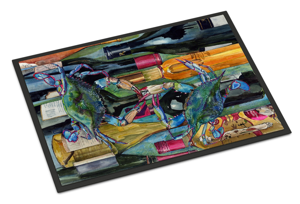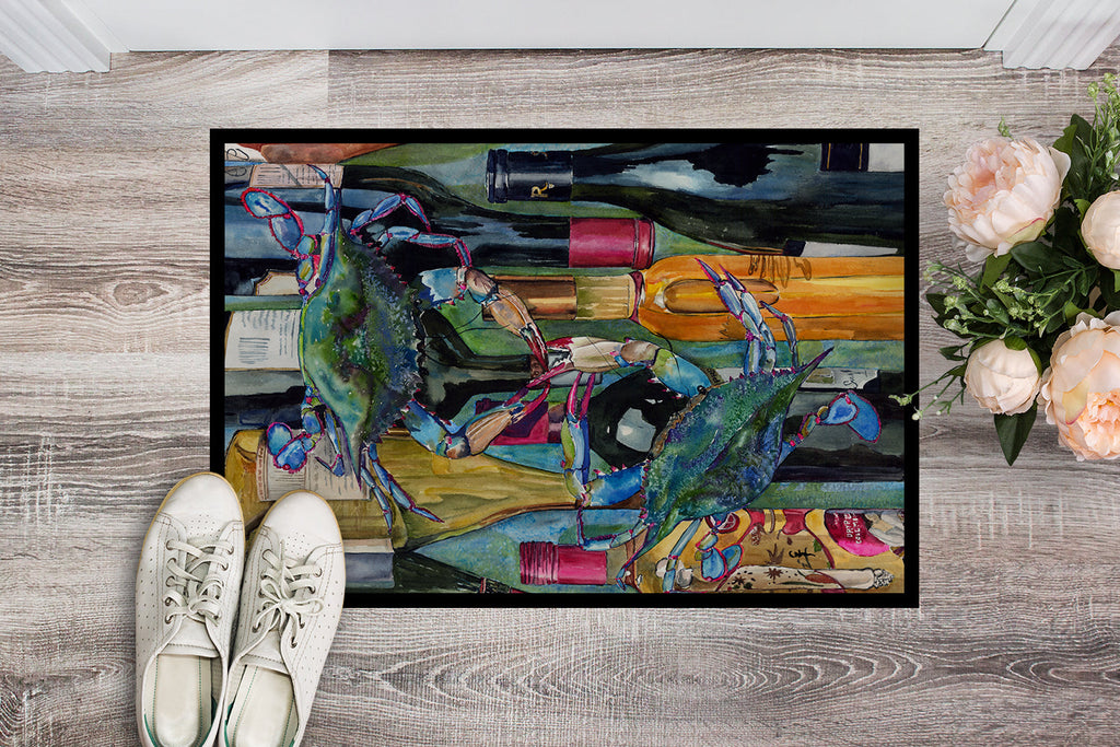 Blue Crabby Wine Bottles Doormat - 24x36 Decorative Floor Mat – Indoor/Outdoor Rug