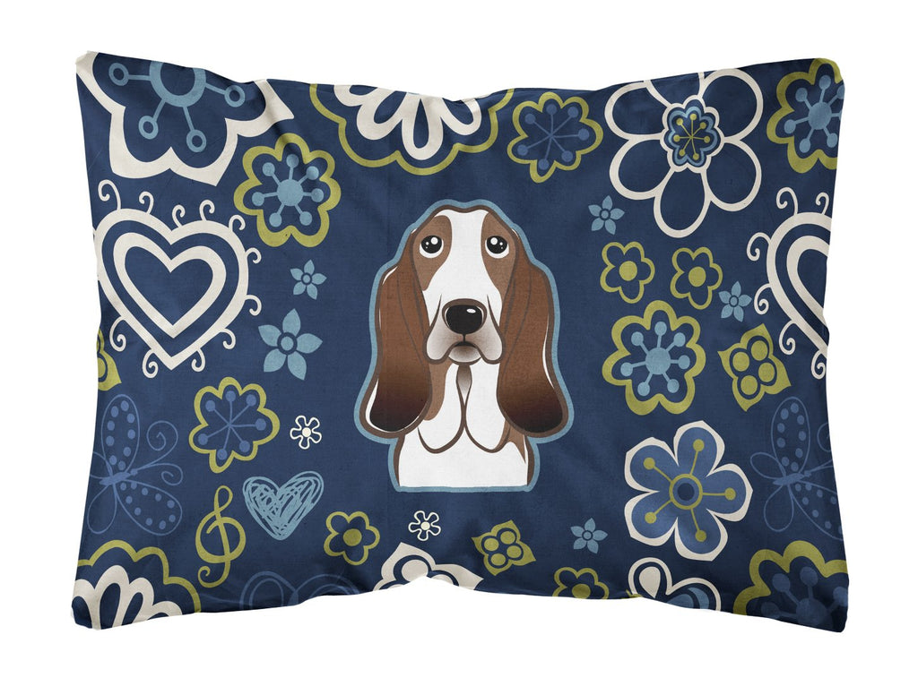 Blue Flowers Basset Hound Canvas Fabric Decorative Pillow BB5094PW1216