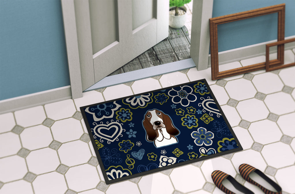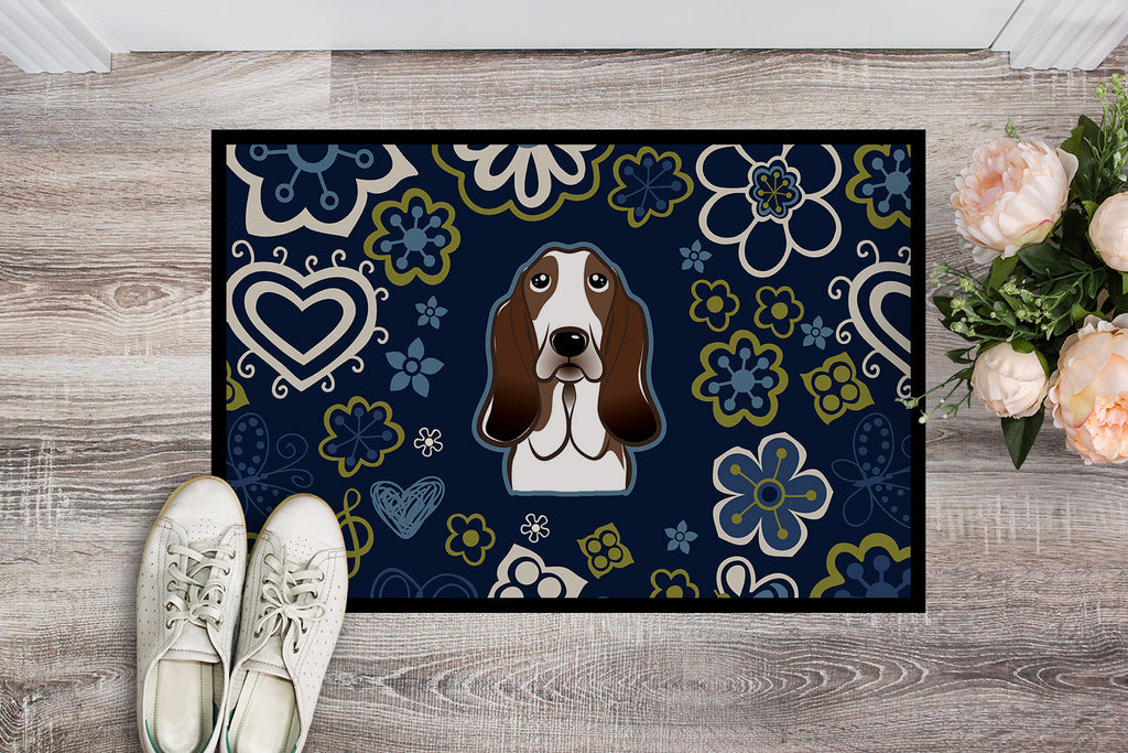 Decorate your space with our Basset Hound artwork on a Doormat. Welcome your guests in style with our Artwork Door Mat, designed to withstand almost any weather condition. This mat, measuring approximately 18 by 27 inches, is held together by durable black binding tape. Its top layer, composed of polyester felt, is dyed with the eye-catching image you see on the mat. A few layers below provide the mat with stability, while its rubber bottom is stamped to help prevent slipping and ensures safety. Our mat works wonderfully as both an indoor or outdoor door mat. For cleaning, simply hose it off with water or use a power washer - no need for any cleaner that produces suds. Avoid scrubbing with a brush, instead, opt for the vacuum on floor setting. Designed manufactured and printed in the USA, this mat is a perfect addition to your porch, outdoor kitchen, entryway, or any indoor space. Its unique design makes it a charming decorative rug that greets your guests and adds a stylish touch to your home decor.