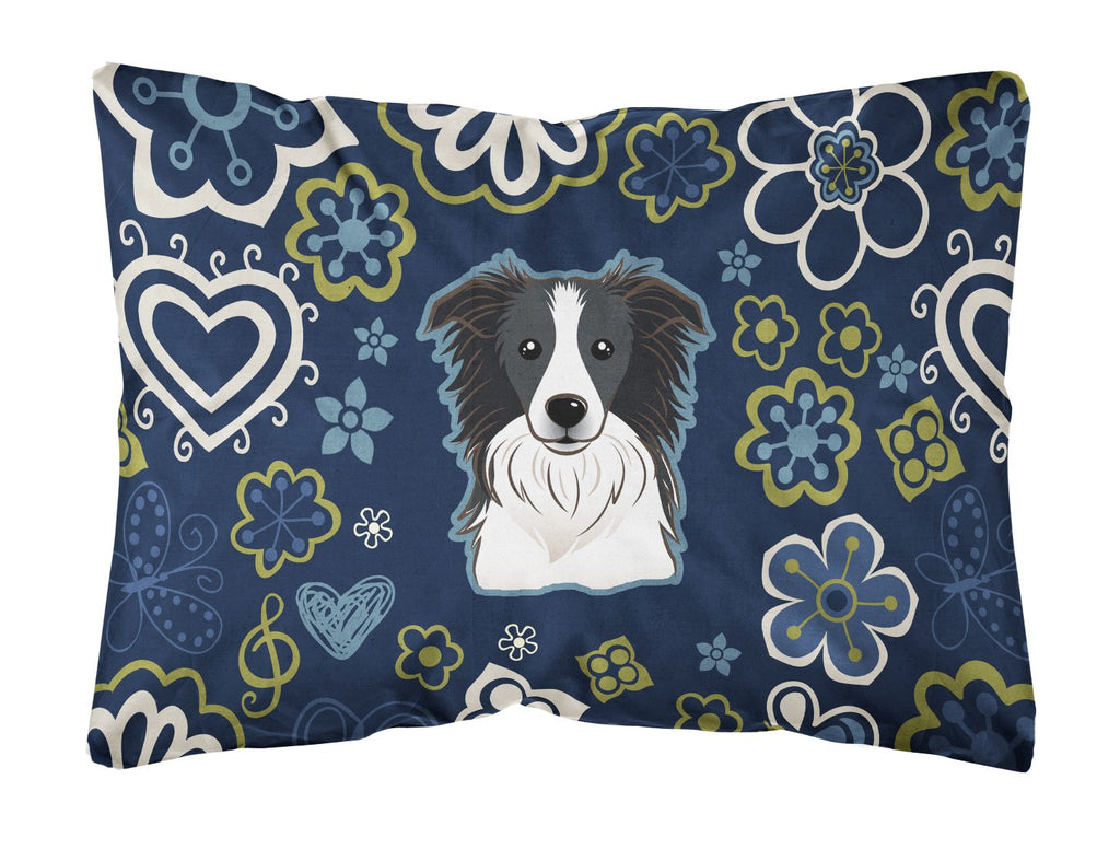 Blue Flowers Border Collie Canvas Fabric Decorative Pillow BB5092PW1216