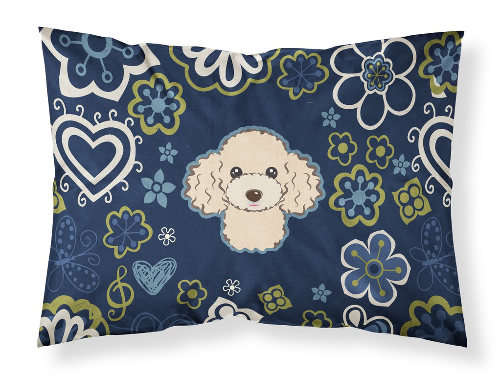 Blue Flowers Buff Poodle Fabric Standard Pillowcase – Artistic Decorative Front, White Back BB5109PILLOWCASE