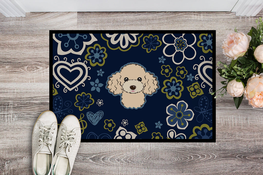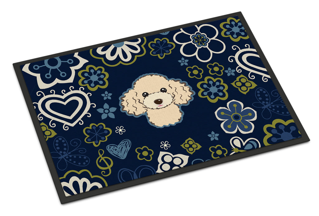 Blue Flowers Buff Poodle Doormat - 24x36 Decorative Floor Mat – Indoor/Outdoor Rug with Artistic Flair BB5109JMAT