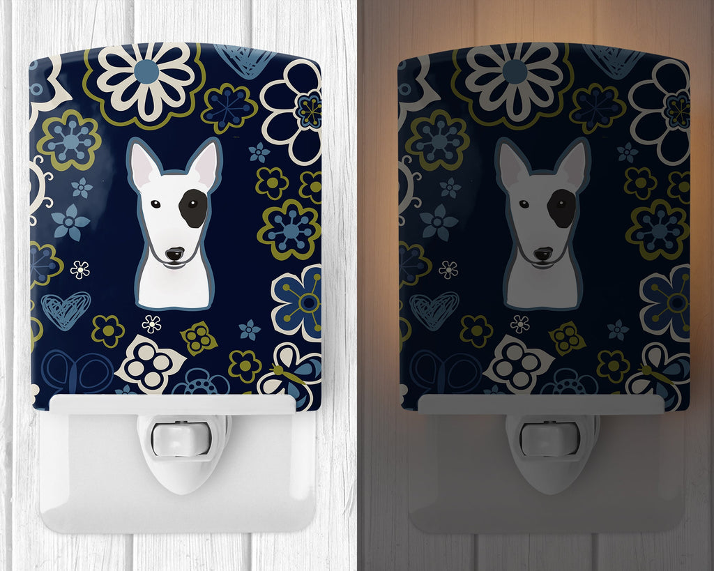 Blue Flowers Bull Terrier Ceramic Night Light BB5060CNL