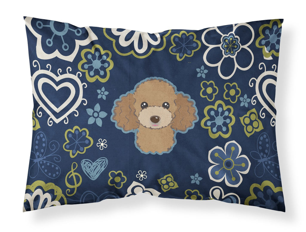 Blue Flowers Chocolate Brown Poodle Fabric Standard Pillowcase – Artistic Decorative Front, White Back BB5107PILLOWCASE