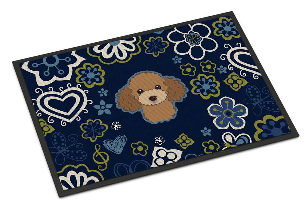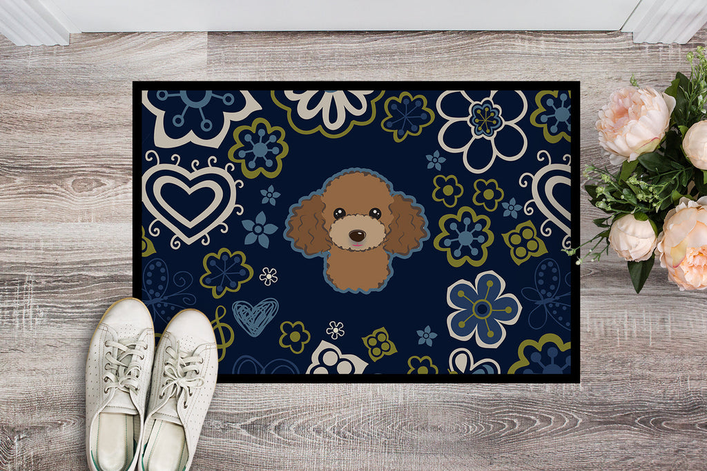 Blue Flowers Chocolate Brown Poodle Doormat - 24x36 Decorative Floor Mat – Indoor/Outdoor Rug with Artistic Flair BB5107JMAT