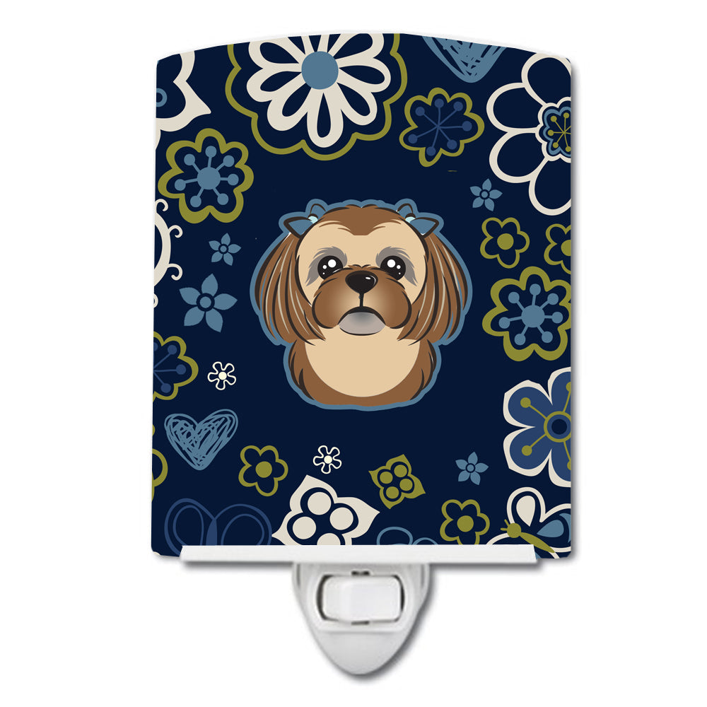 Blue Flowers Chocolate Brown Shih Tzu Ceramic Night Light BB5100CNL