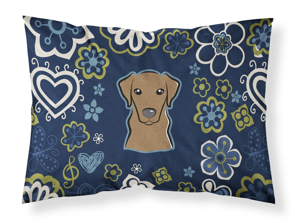 Blue Flowers Chocolate Labrador Fabric Standard Pillowcase – Artistic Decorative Front, White Back BB5085PILLOWCASE