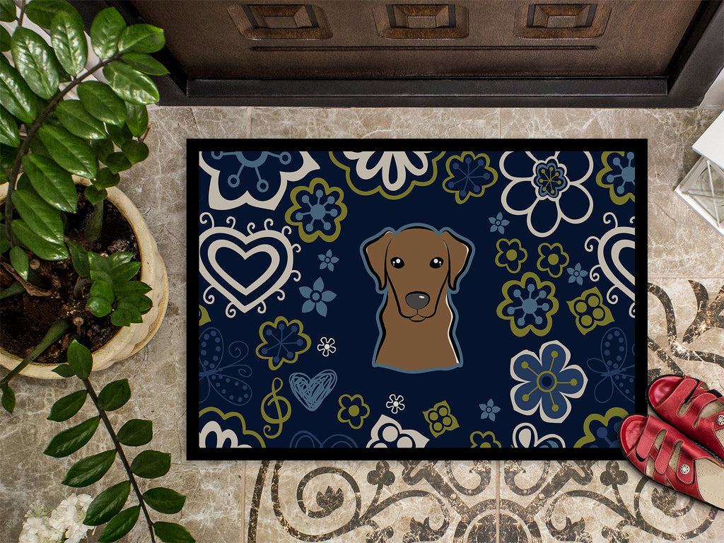 Blue Flowers Chocolate Labrador Doormat - 24x36 Decorative Floor Mat – Indoor/Outdoor Rug with Artistic Flair BB5085JMAT
