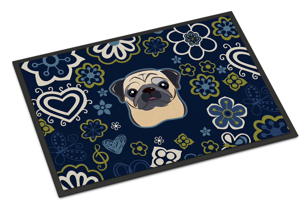 Blue Flowers Fawn Pug Doormat - 24x36 Decorative Floor Mat – Indoor/Outdoor Rug with Artistic Flair BB5113JMAT