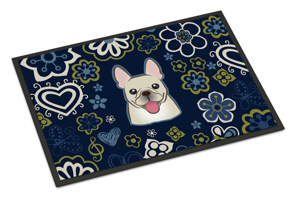 Blue Flowers French Bulldog Doormat - 24x36 Decorative Floor Mat – Indoor/Outdoor Rug with Artistic Flair BB5089JMAT