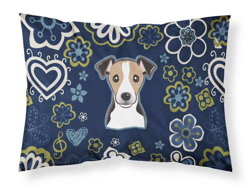 Blue Flowers Jack Russell Terrier Fabric Standard Pillowcase – Artistic Decorative Front, White Back BB5112PILLOWCASE