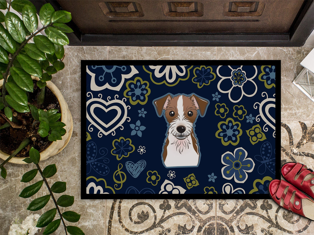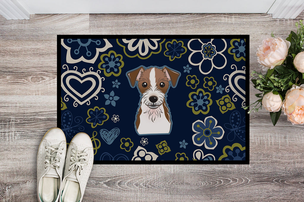 Blue Flowers Jack Russell Terrier Doormat - 24x36 Decorative Floor Mat – Indoor/Outdoor Rug with Artistic Flair BB5053JMAT