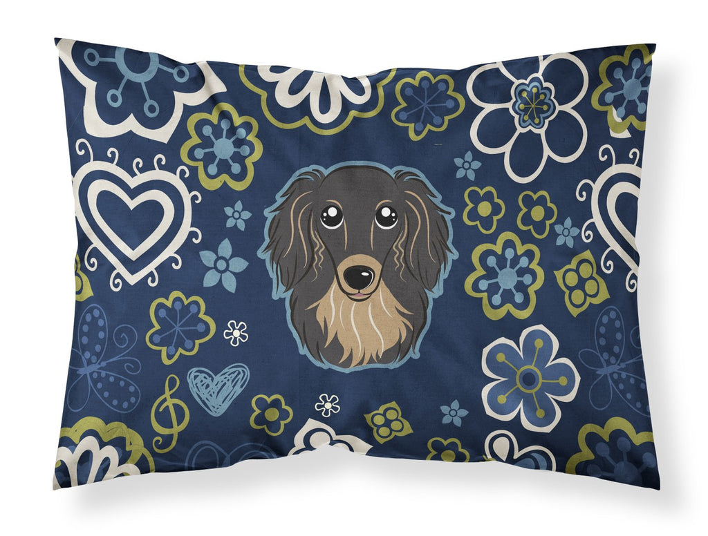 Blue Flowers Longhair Black and Tan Dachshund Fabric Standard Pillowcase – Artistic Decorative Front, White Back BB5064PILLOWCASE