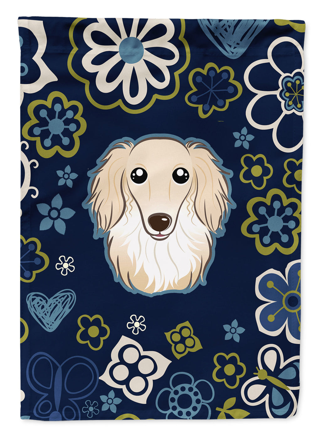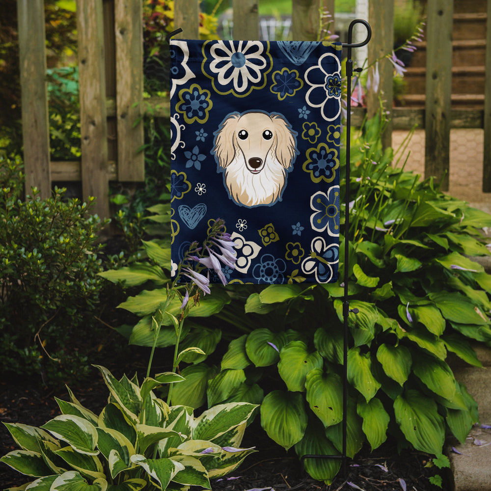 Blue Flowers Longhair Creme Dachshund Garden Flag - Outdoor Decorative Yard Flag BB5063GF
