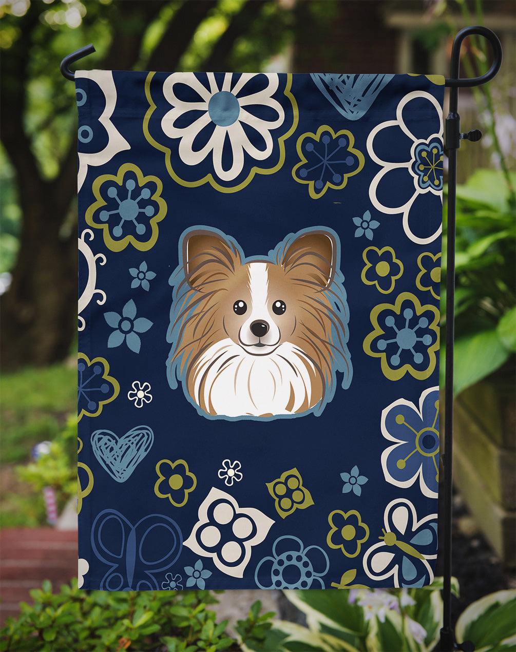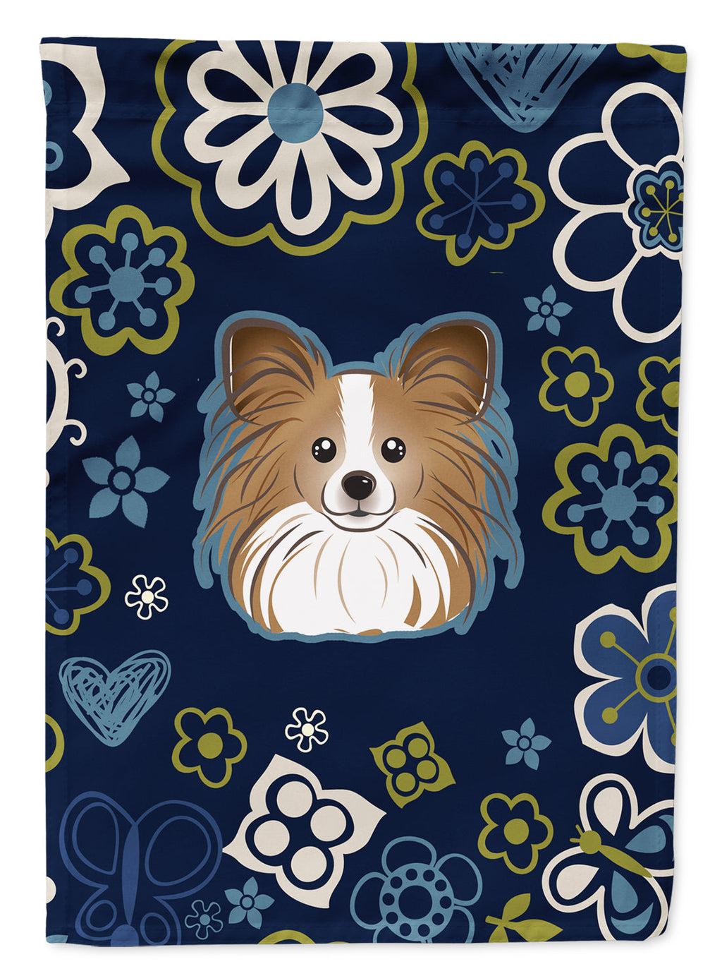 Decorate your space with our Papillon artwork on a Garden Flag. Enhance the beauty of your garden, patio, or yard with Caroline's Treasures Decorative Garden Flag, proudly made in the USA. Crafted from two pieces of thick, double-sided polyester fabric, this 2-ply garden flag is designed to withstand various weather conditions, making it water-resistant and weatherproof. Featuring correctly readable words on both sides, this garden flag offers a delightful visual experience from any angle. With its heavier weight, it stands out among other garden flags, ensuring stability and durability even in wind, rain, and snow. Measuring approximately 11 1/4 inches by 15 1/2 inches, this flag allows you to personalize your outdoor decor. It comes with a 1 1/2-inch sleeve sewn in, allowing easy attachment to any standard garden flag stand or garden size porch hanger (sold separately). Make a statement in your outdoor space with Caroline's Treasures Decorative Garden Flag, a vibrant and high-quality flag that adds color and personality to your surroundings. Proudly made in the USA, it's a symbol of quality craftsmanship and attention to detail.