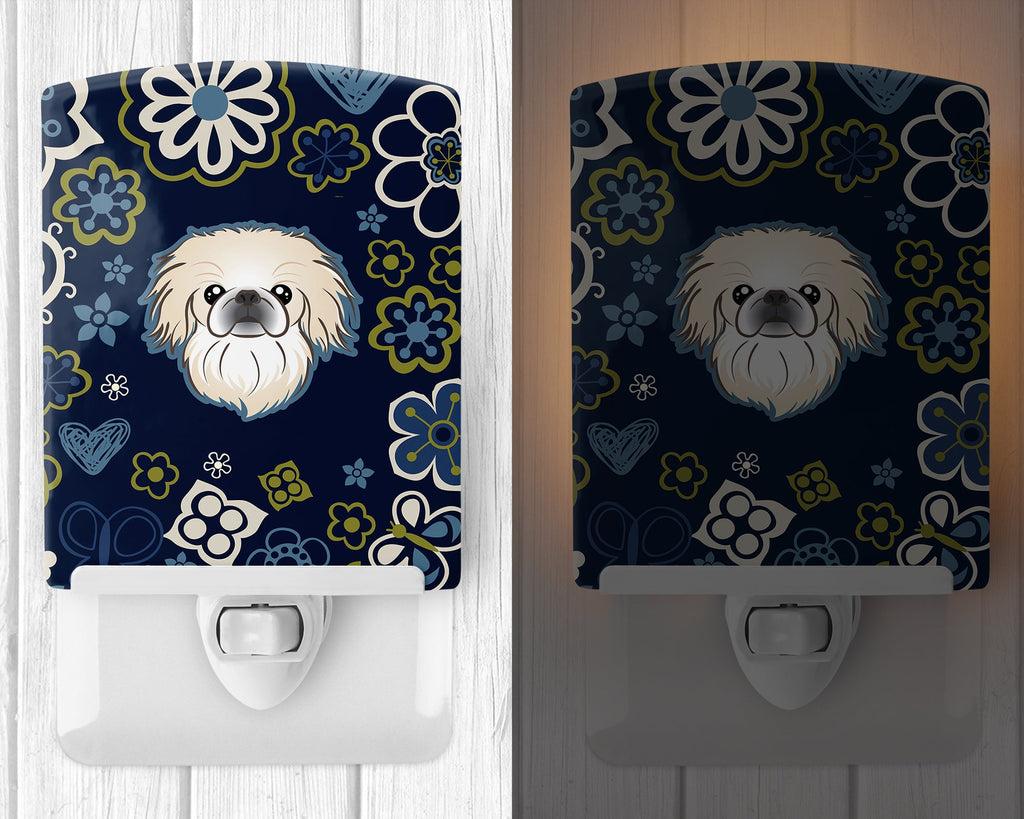 Blue Flowers Pekingese Ceramic Night Light BB5072CNL