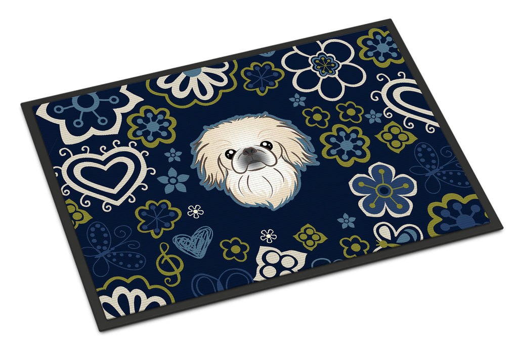 Decorate your space with our Pekingese artwork on a Doormat. Welcome your guests in style with our Artwork Door Mat, designed to withstand almost any weather condition. This mat, measuring approximately 24 by 36 inches, is held together by durable black binding tape. Its top layer, composed of polyester felt, is dyed with the eye-catching image you see on the mat. A few layers below provide the mat with stability, while its rubber bottom is stamped to help prevent slipping and ensures safety. Our mat works wonderfully as both an indoor or outdoor door mat. For cleaning, simply hose it off with water or use a power washer - no need for any cleaner that produces suds. Avoid scrubbing with a brush, instead, opt for the vacuum on floor setting. Designed manufactured and printed in the USA, this mat is a perfect addition to your porch, outdoor kitchen, entryway, or any indoor space. Its unique design makes it a charming decorative rug that greets your guests and adds a stylish touch to your home decor.
