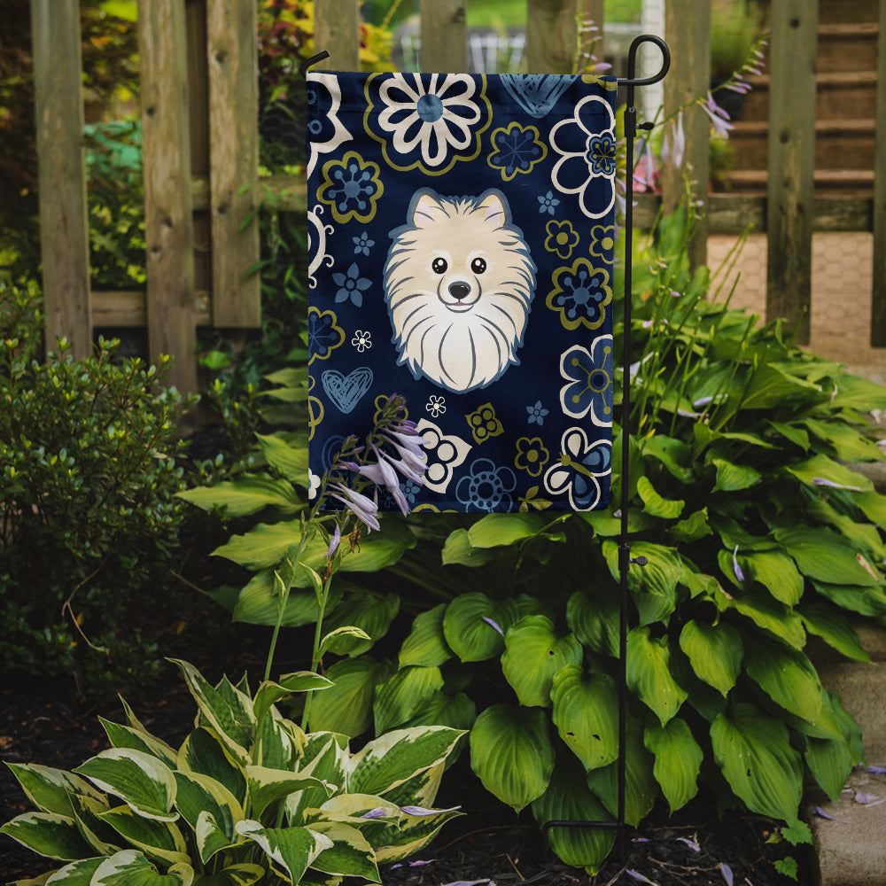 Decorate your space with our Pomeranian artwork on a Garden Flag. Enhance the beauty of your garden, patio, or yard with Caroline's Treasures Decorative Garden Flag, proudly made in the USA. Crafted from two pieces of thick, double-sided polyester fabric, this 2-ply garden flag is designed to withstand various weather conditions, making it water-resistant and weatherproof. Featuring correctly readable words on both sides, this garden flag offers a delightful visual experience from any angle. With its heavier weight, it stands out among other garden flags, ensuring stability and durability even in wind, rain, and snow. Measuring approximately 11 1/4 inches by 15 1/2 inches, this flag allows you to personalize your outdoor decor. It comes with a 1 1/2-inch sleeve sewn in, allowing easy attachment to any standard garden flag stand or garden size porch hanger (sold separately). Make a statement in your outdoor space with Caroline's Treasures Decorative Garden Flag, a vibrant and high-quality flag that adds color and personality to your surroundings. Proudly made in the USA, it's a symbol of quality craftsmanship and attention to detail.