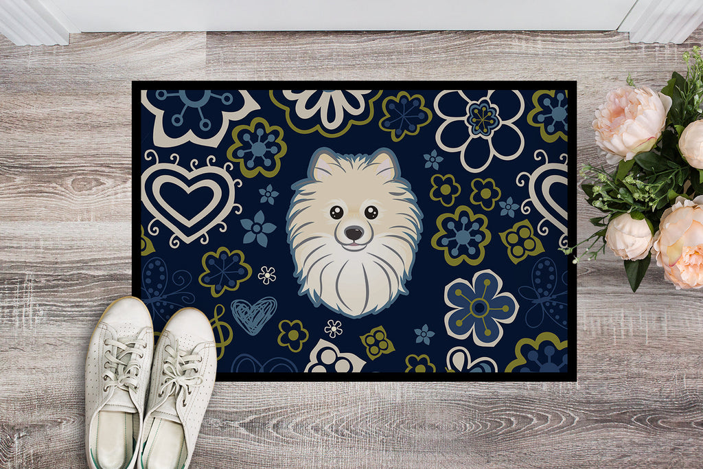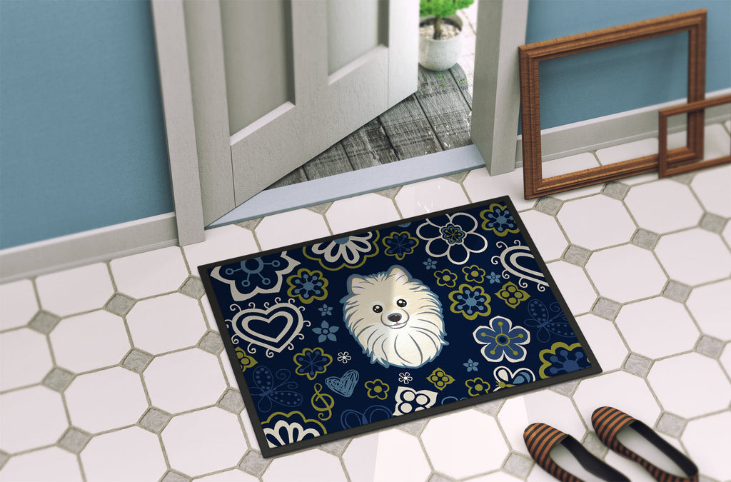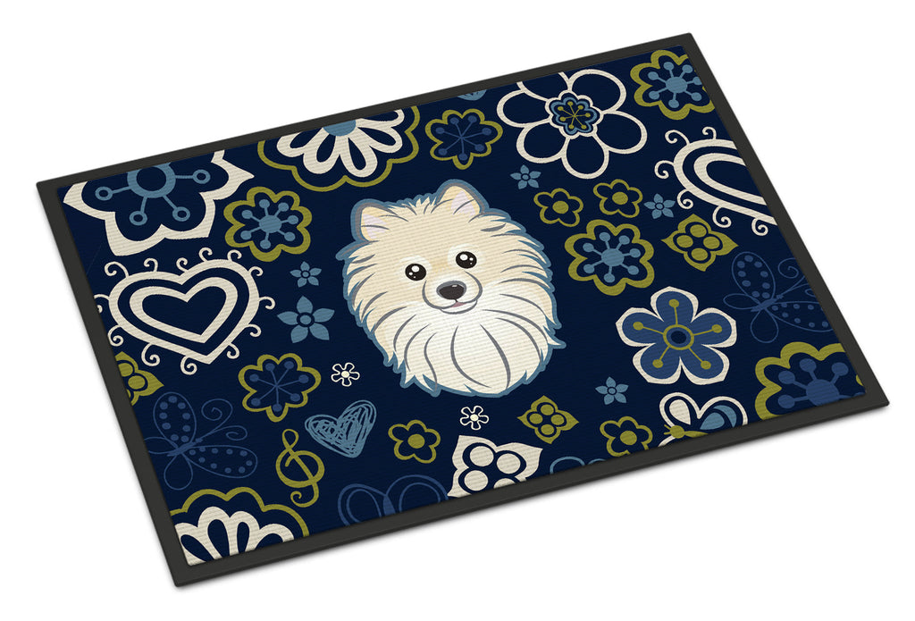 Blue Flowers Pomeranian Doormat - 24x36 Decorative Floor Mat – Indoor/Outdoor Rug with Artistic Flair BB5058JMAT