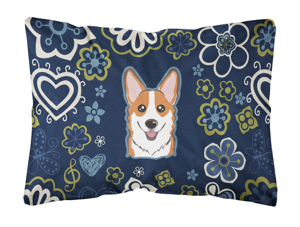 Blue Flowers Red Corgi Canvas Fabric Decorative Pillow BB5105PW1216