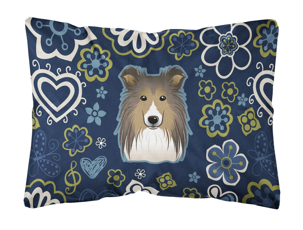 Blue Flowers Sheltie Canvas Fabric Decorative Pillow BB5093PW1216