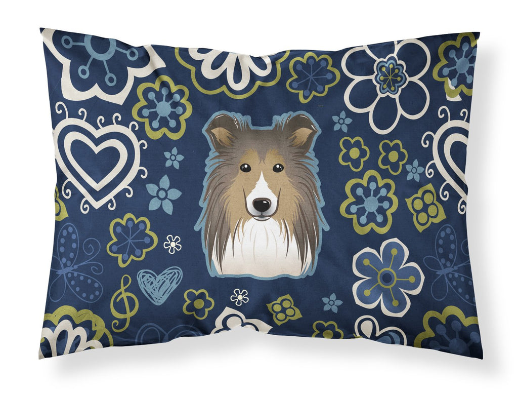 Blue Flowers Sheltie Fabric Standard Pillowcase – Artistic Decorative Front, White Back BB5093PILLOWCASE